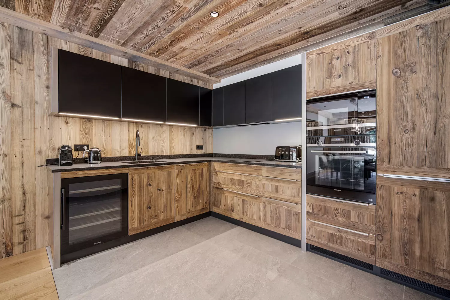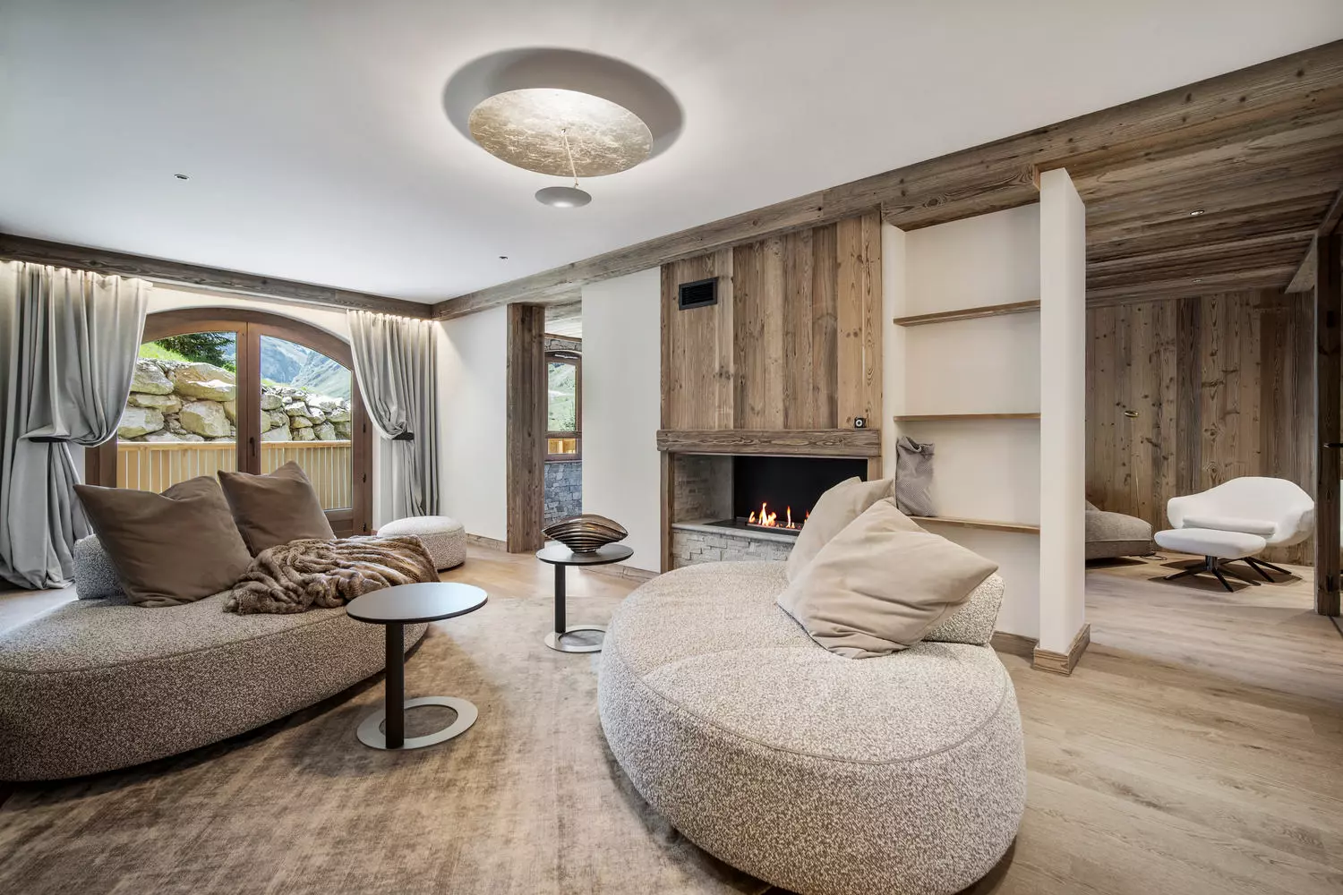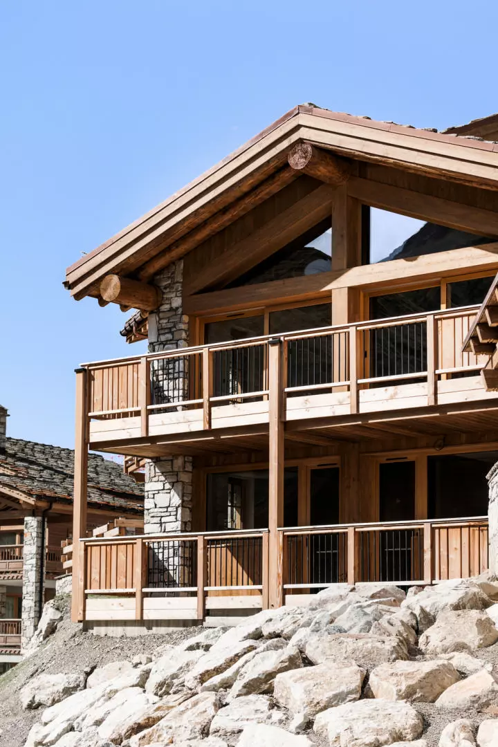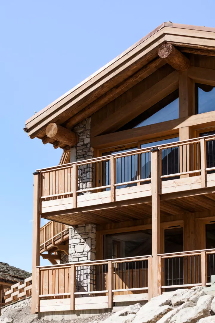This development features an attractive mix of 13 apartments and 4 individual chalets. The architectural style maintains traditional Alpine facades, constructed with stone and larch wood, that blend into the mountain surroundings. Inside, the properties showcase contemporary interiors that contrast nicely with the external design elements.