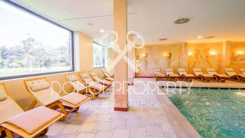 La struttura vanta 18 suites elegantemente arredate e dotate di ogni comfort, con la possibilità di realizzare altre 20 camere. Al suo interno troverete una lussuosa SPA di 750 mq, con piscina interna riscaldata di 130 mq, sala massaggi, bagno turco e sauna. L’edificio si sviluppa su due piani, della superficie di 750 mq ciascuno, e dispone di reception, sala colazione e camere automatizzate. Inoltre troverete un piccolo centro fitness, un parcheggio esterno e un’area verde.