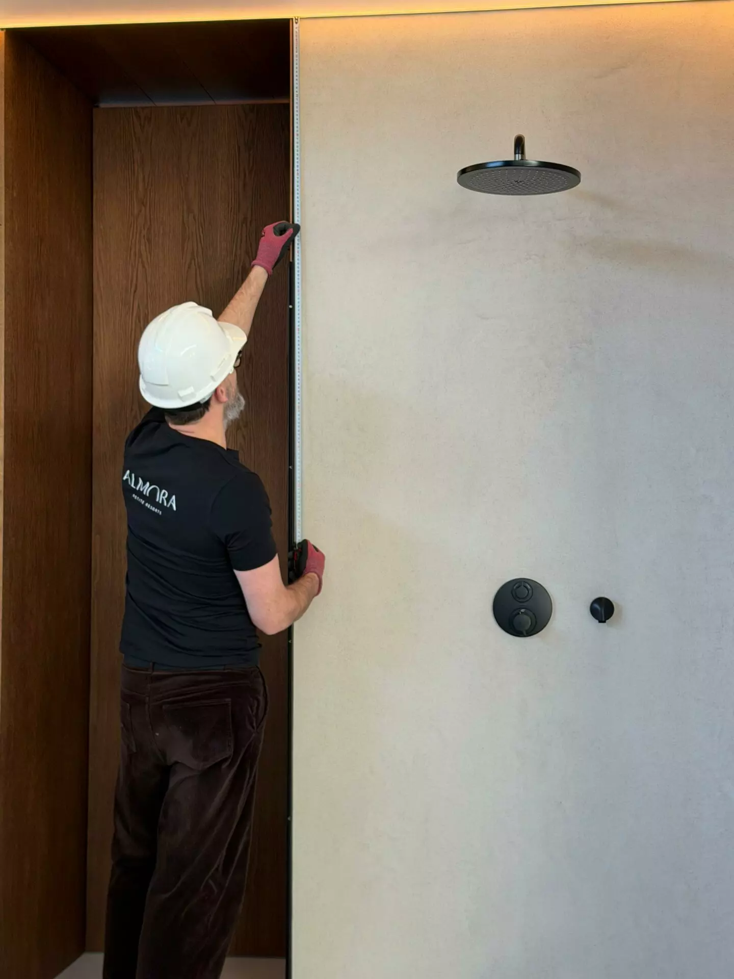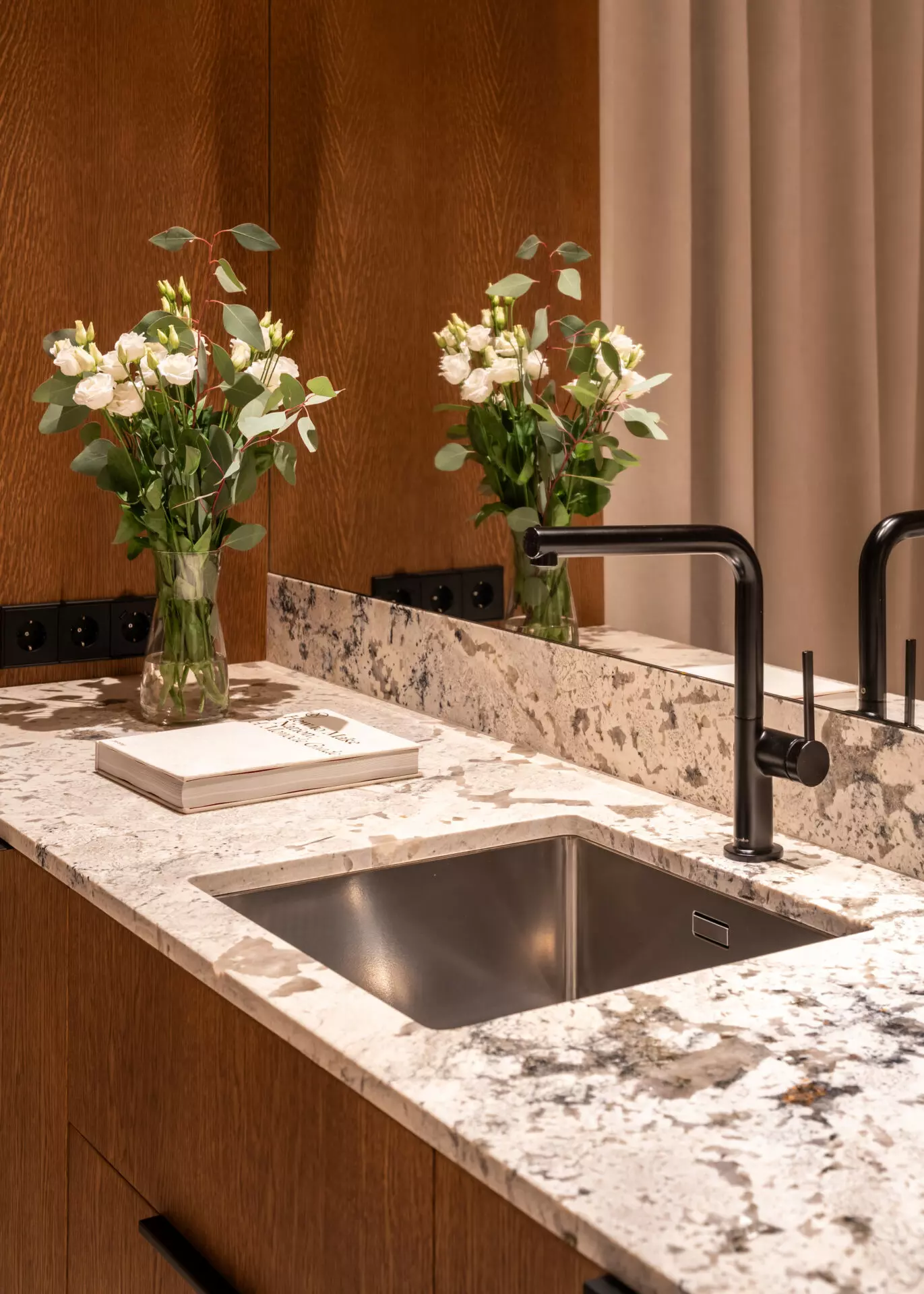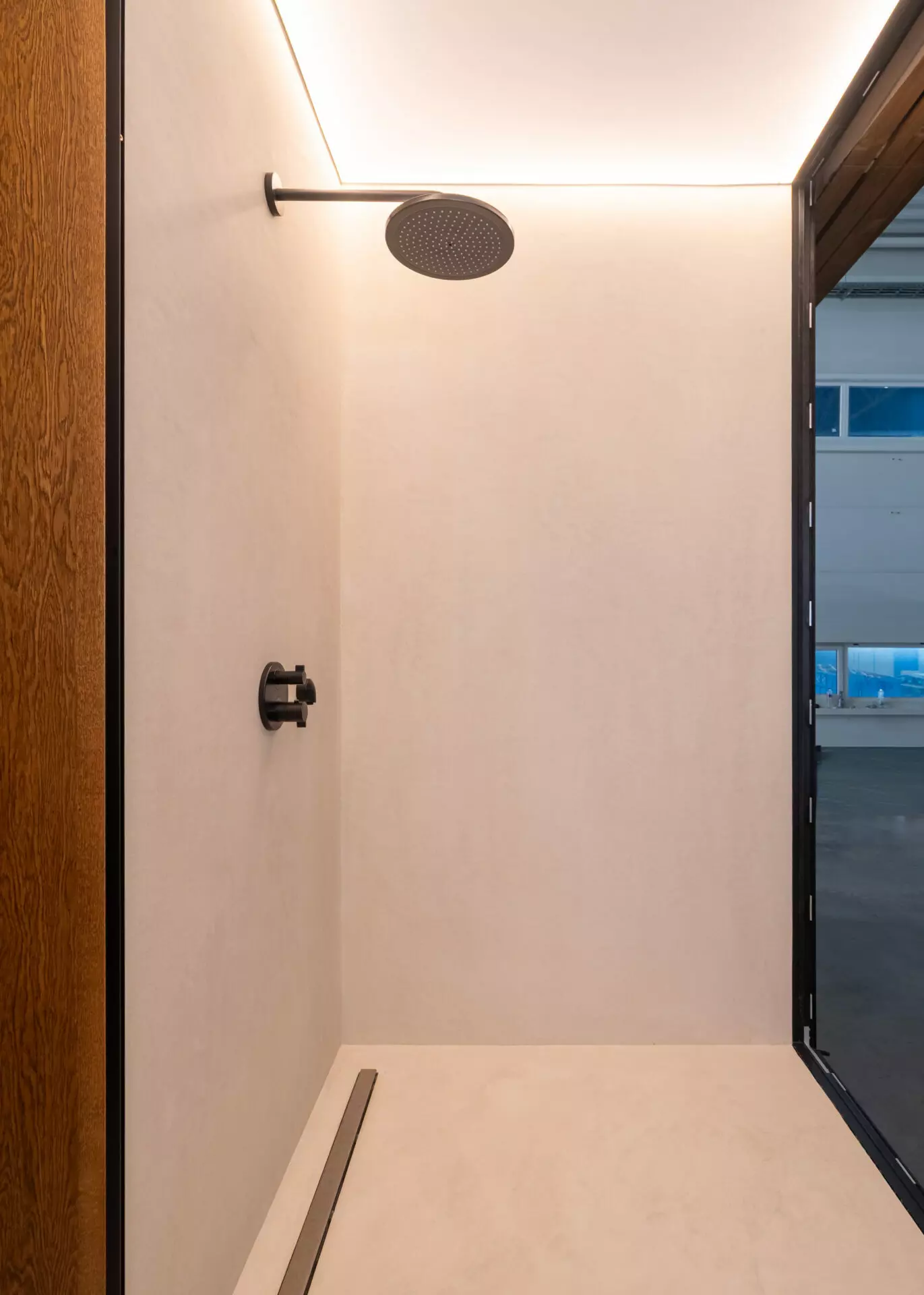 Interior finishes include limestone floors and oak veneer wall panels. The bathroom is fitted with Hansgrohe and Villeroy & Boch fixtures. Integrated Flos lighting, Toshiba climate control, infrared heated floors and a smart home system built on Siemens, Shelly and Homey automation with JUNG kinetic switches complete the interior.