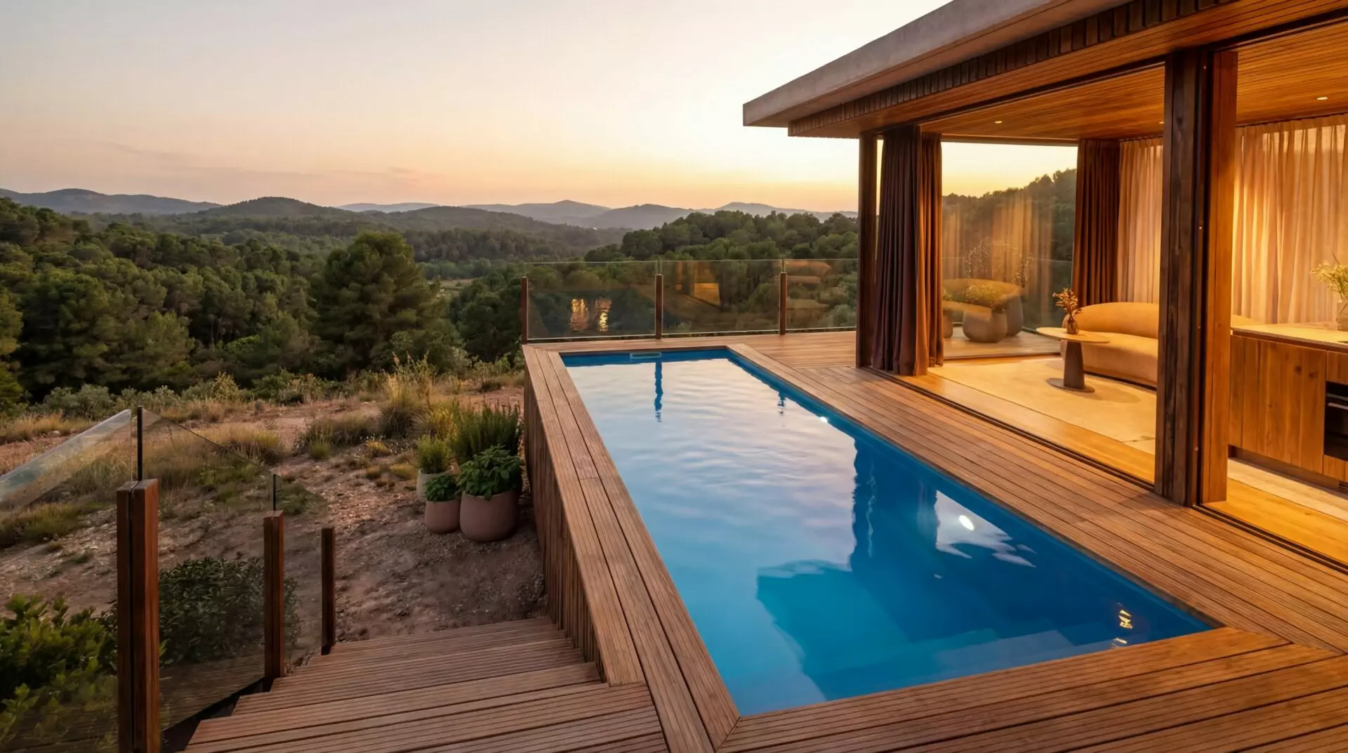 A fully finished premium cabin with an infinity pool and terrace, ready for delivery to any land plot in Europe within a few days. No construction site. No waiting. No utility connections. No permits required.