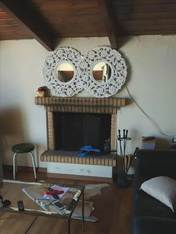 This building is equipped with essential amenities including solar panels for water heating, ensuring energy efficiency. The installation of air conditioning enhances comfort during warmer months. Additionally, a fireplace is present, providing a source of warmth and possibly adding to the appeal of the space.