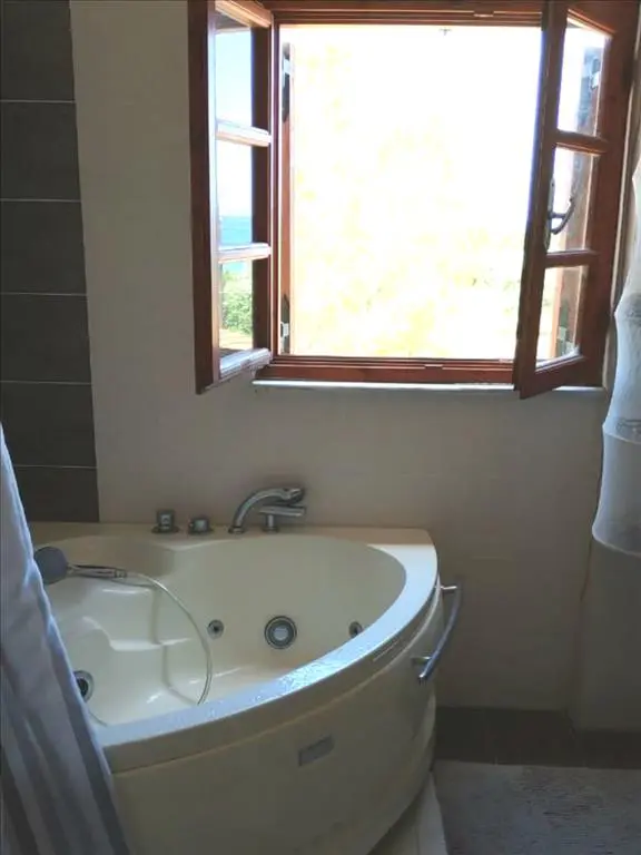 The property boasts a significant advantage with its sea view, visible from the windows. This aspect not only enhances the overall atmosphere but can also increase the value of the property. Additionally, a garden is included, providing an outdoor area that can be utilized for various activities or relaxation.