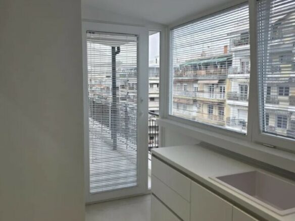 This apartment features a straightforward layout that includes one bedroom, a living room combined with a kitchen, and a shower WC. The double-frontage design ensures that natural light can enter multiple parts of the apartment, making for a well-lit living space. From the windows, you’ll find views of the sea, adding an additional layer of value to this property.