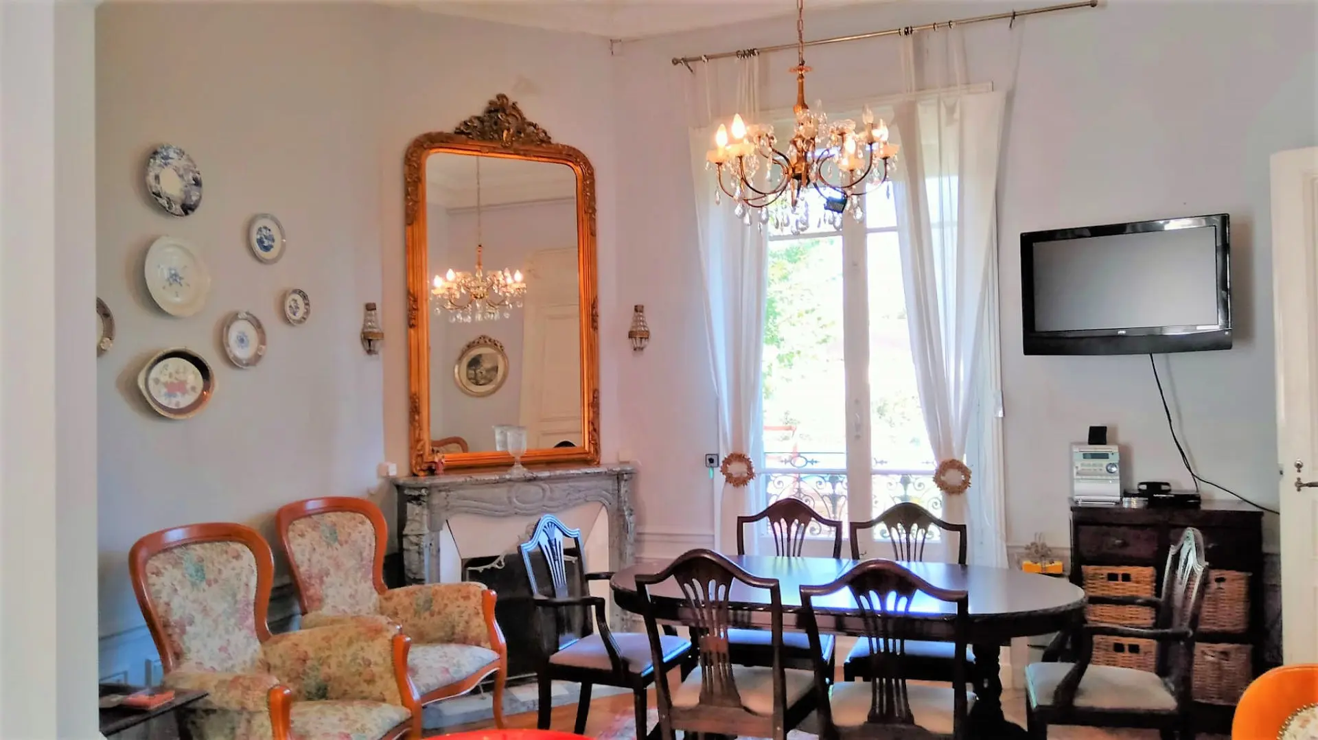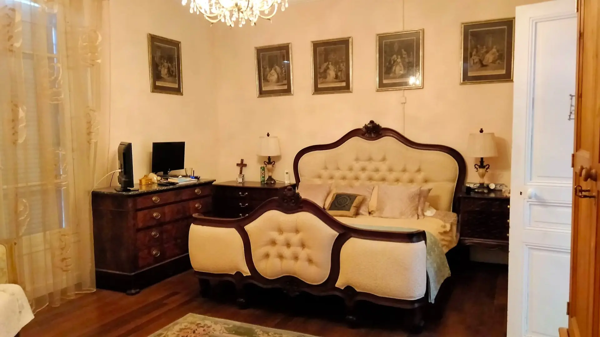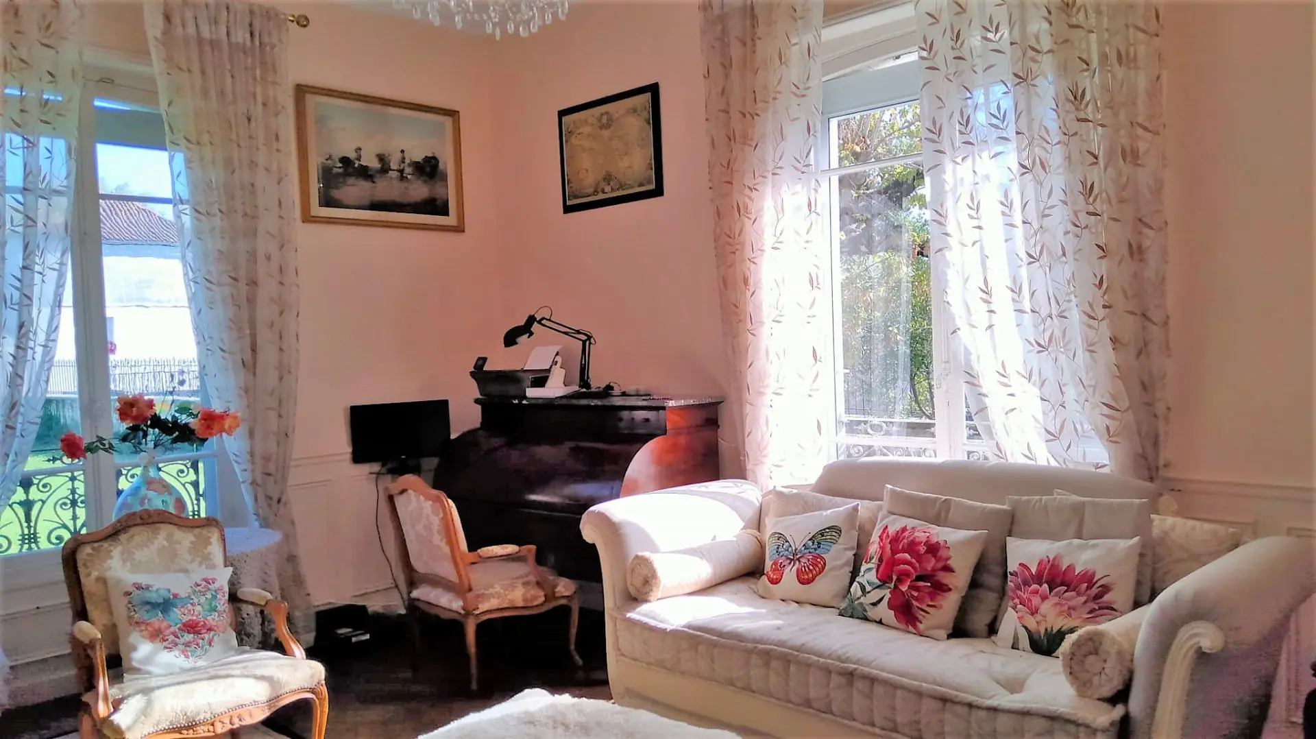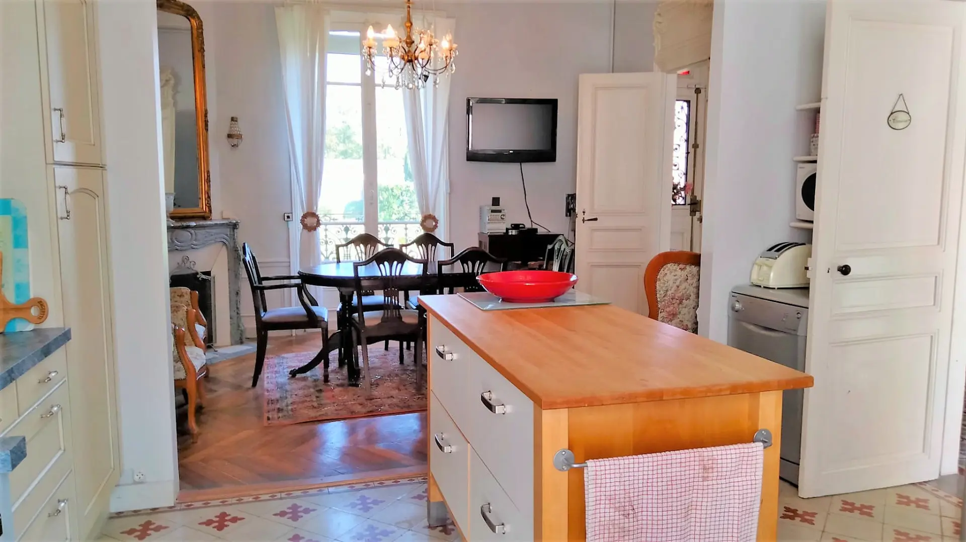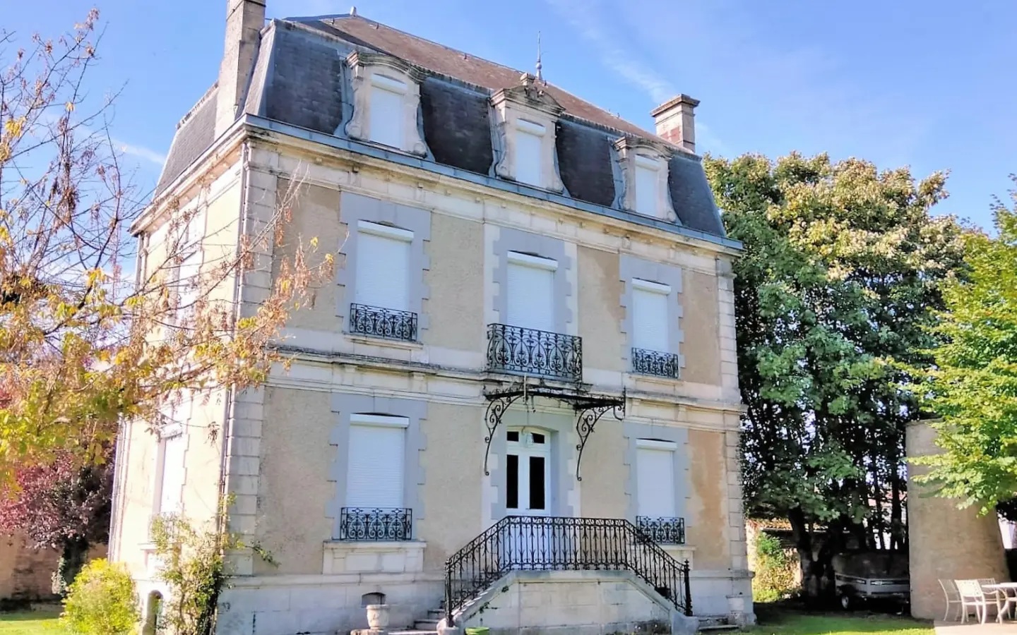 Historic Maison de Maître walking distance to the centre of the historic market town of Aigre and being ready for immediate occupation in comfort. The former residence of a prominent local Cognac producer is set over 3 levels with many classic original features. Ground floor, WC, Kitchen dining suite and living room, and a part covered rear terrace for dinning al fresco. 2 nd floor has 2 bedrooms both with ensuite facilities. The 3 rd floor benefits from a further 3 bedrooms and family bathroom with period free standing bath and shower. For your comfort gas central heating, mains drainage and secure electric shutters on the first two floors. In the grounds 1500 m² you find a large pool and shady terrace area with a well and garage and workshop. Also, the rustic 1 bed keepers cottage with exposed stone features, set on two levels, with upstairs bedroom and shower room. Finally, the essential fibre internet for homeworking and only 40 mins for the TGV in Angoulême with road links to the nearby airports of Limoges and Poitiers.