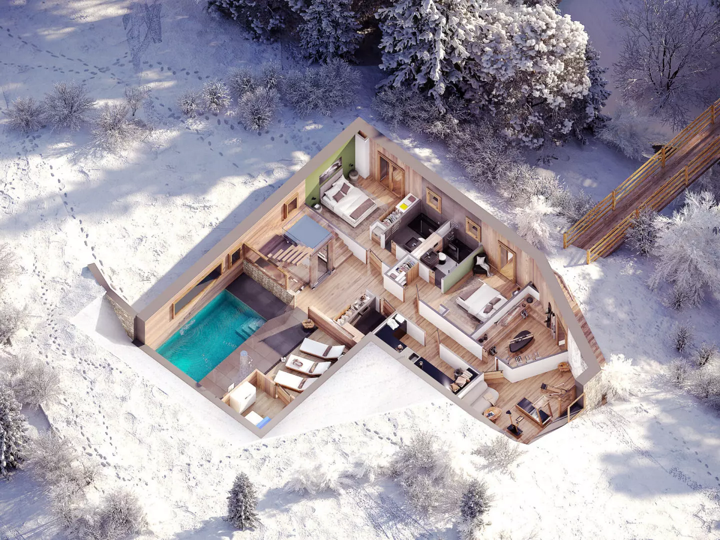 This chalet also includes a private bridge that spans the river, facilitating easy access to the slopes. This feature not only enhances convenience but also adds a unique aspect to the overall property layout. It is not every day that a home provides such direct access to outdoor activities.