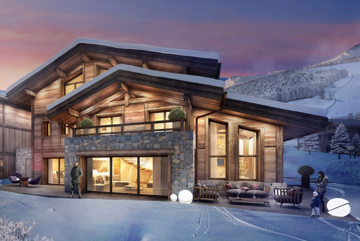Each chalet consists of five ensuite bedrooms designed for functionality. The open-plan living area connects directly to a large terrace, enhancing the space and providing opportunities for outdoor activities. The west-facing orientation of these living areas allows for sunset views over the mountains, which can be an appealing aspect for residents.
