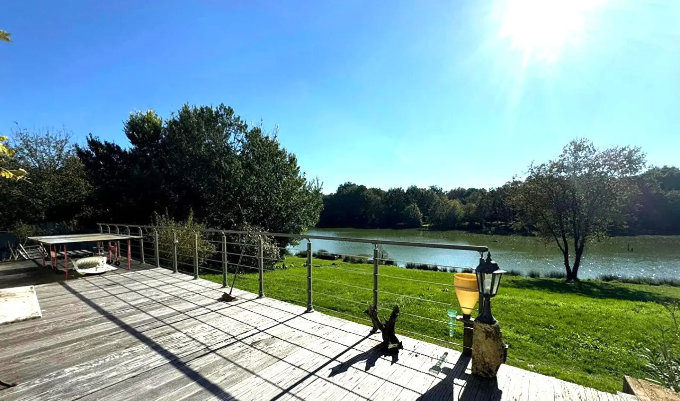 Stunning natural location. Near the vibrant historic riverside market town of L’Isle Jourdain with shops and commerce. The ensemble includes the main rustic farmhouse 4 bedrooms which is south facing with stunning views of the 5-ha lake from the terrace, and a further detached 2 bedroom house nearby in the grounds, also with lake views. All set in the grounds of approximately 4 ha surrounding the private lake, which is stocked with Carp, Pike Perch, Black Bass, for fishing enthusiasts, with 10 swims of which 5 of these have wooden cabins, a shower/toilet facilities for fishing guests, and a small breeding lake. All business ventures are subject to the necessary permissions.