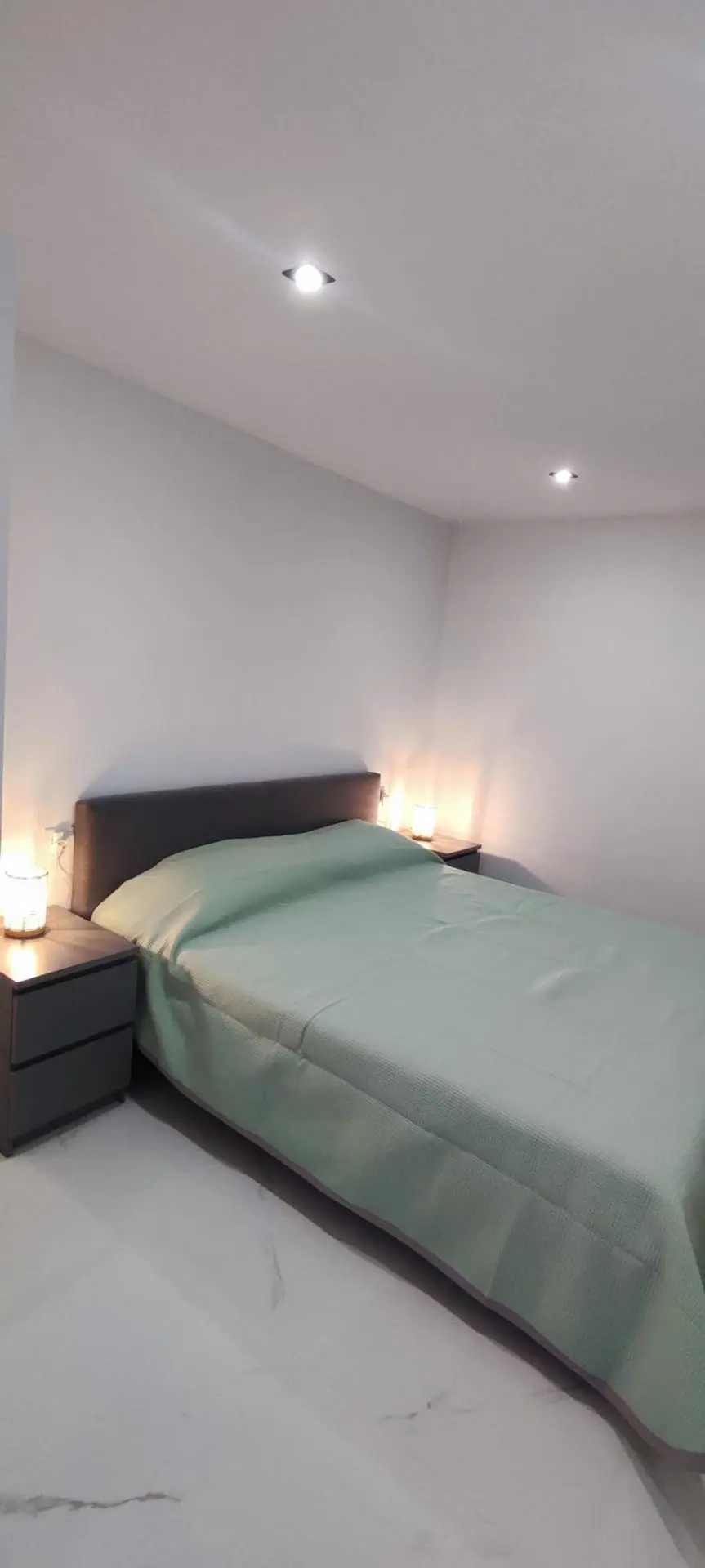 This apartment consists of two bedrooms, both equipped with built-in wardrobes, ensuring ample storage space. The living area features an open-plan design that seamlessly integrates the living and dining room. The floor-to-ceiling windows allow for plenty of natural light and provide direct views of the sea, creating a bright and inviting atmosphere.