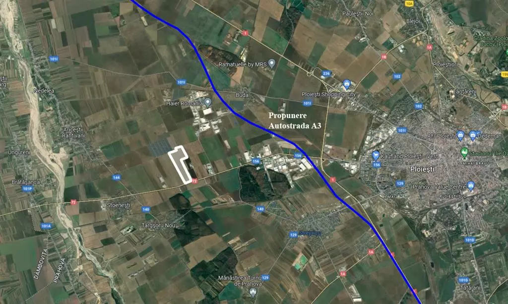 The land is extra-urban, agricultural, with an area of 50 ha and a generous frontage on DN72 Ploiesti-Târgoviste, located near the Ploiesti Ring Road and the future A3 Motorway, facilitating access to the national road network and connectivity with other regions. According to the new Urban General Plan (PUG), the land will be located in a mixed IS/ID area and has incredible potential for investors and developers looking to build industrial facilities, warehouses or production units, given its strategic location for goods transportation and logistics.