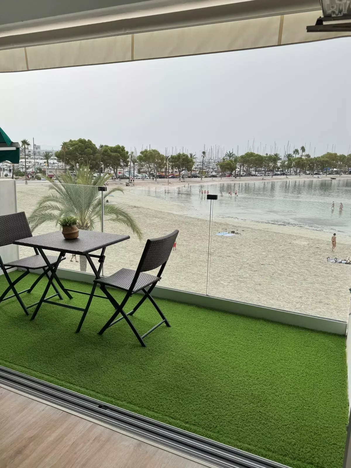 The bathroom has been reconfigured to include a new suite, featuring a lower-level shower tray and rainfall shower head, and has been completely retiled. The open-plan kitchen is fully fitted with high-quality appliances installed. The living room presents open views of the beach and port of Alcudia. Additionally, air conditioning that can provide both hot and cold air is installed, making the apartment suitable for year-round use. New exterior awnings, electric blinds that provide darkness, and electric interior blinds enhance the functionality of the space.