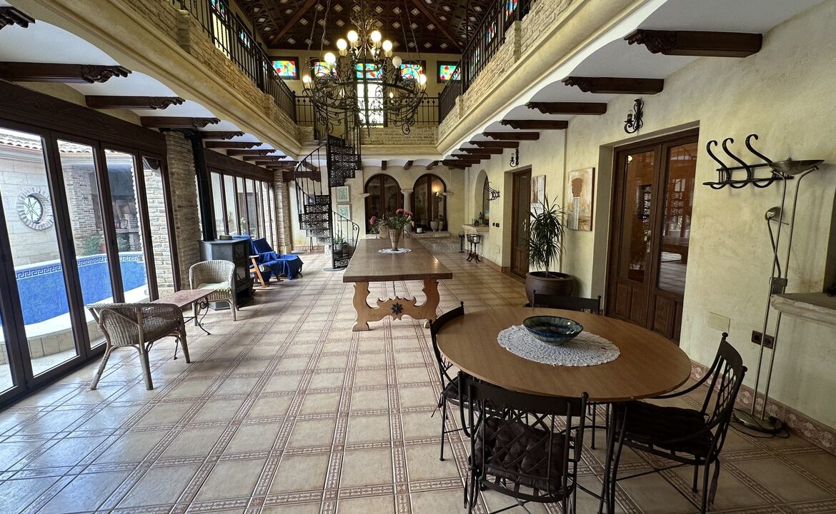 This property spans a total of 1,404 square meters, combining residential and commercial spaces designed to offer various investment opportunities. The residential area occupies 468 square meters on the second floor, surrounded by a courtyard featuring a swimming pool and a barbecue area.