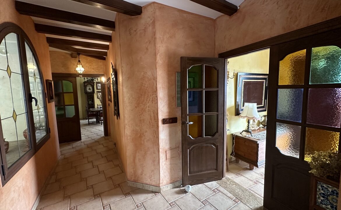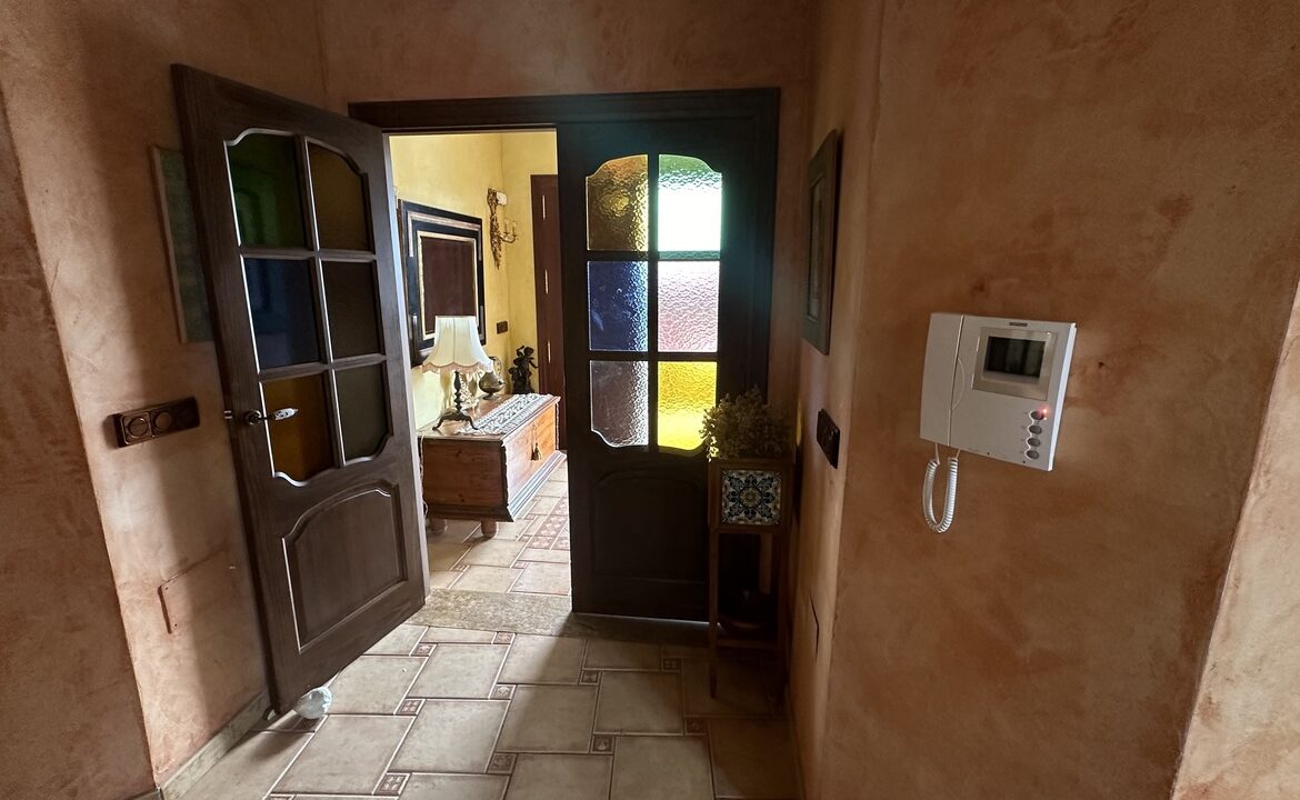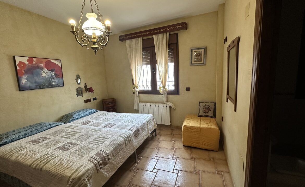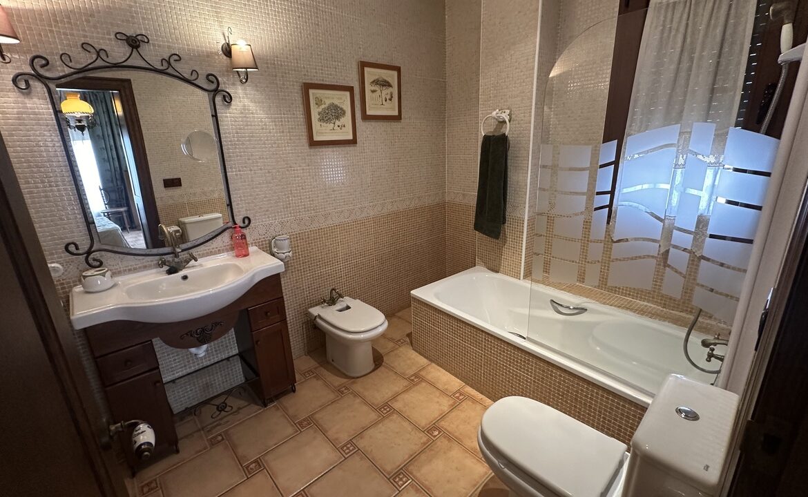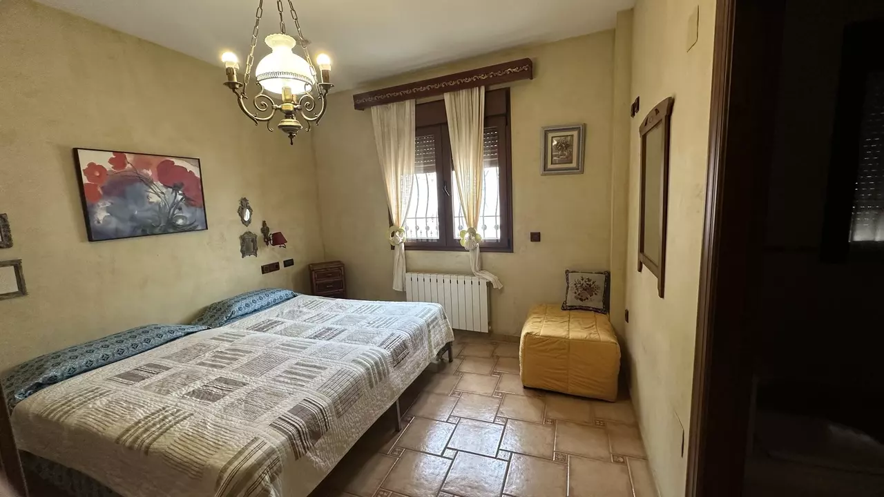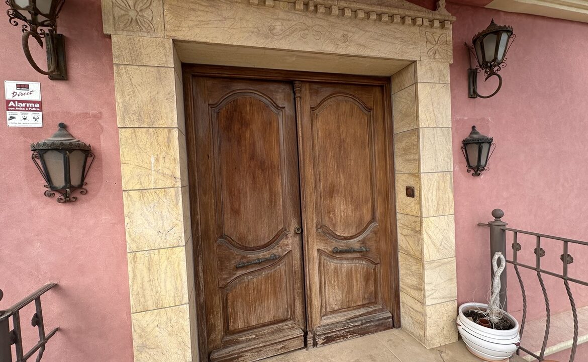 Inside, the residence consists of four bedrooms and four bathrooms. The living room includes a fireplace, while the kitchen is equipped with a pantry and a laundry room. Three of the bedrooms have en-suite bathrooms, and the main bedroom includes a large wardrobe. The upper floor has an attic along with two terraces providing views of the sea and the Torrevieja Salt Lake Park.