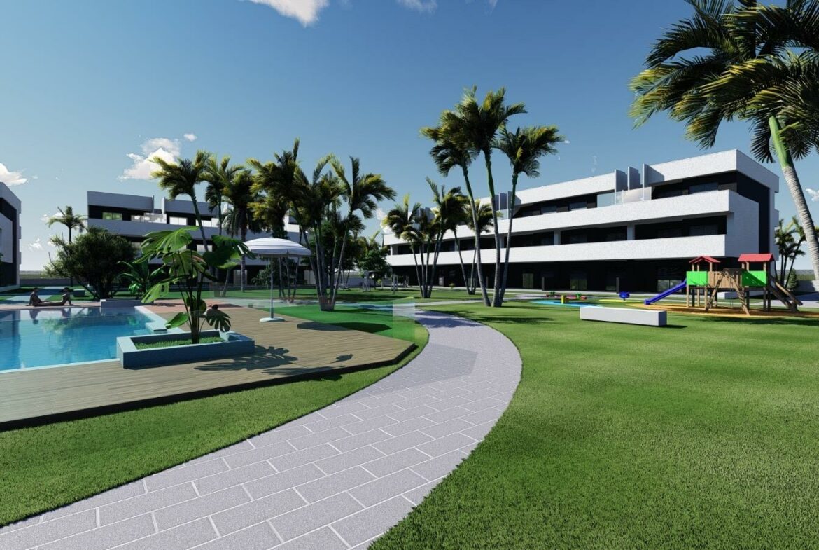 Introducing a new build closed residential complex of touristic apartments in El Raso, Guardamar del Segura. This project features a total of 78 touristic apartments and penthouses, spread across three levels: ground floor, first floor, and second floor, with the addition of a solarium.