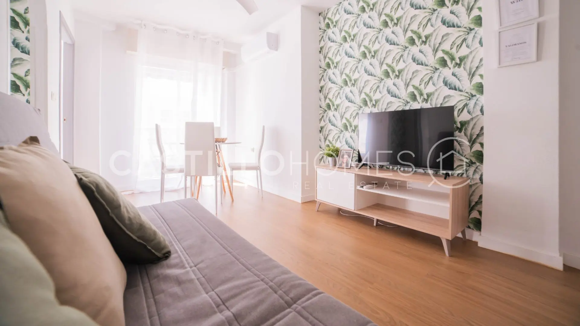 This apartment presents a modern layout, offering three bedrooms that receive plenty of natural light. You will find one complete bathroom, a living-dining room, a balcony, and a terrace that provides views of the sea. The south-facing orientation ensures sunlight throughout the day.