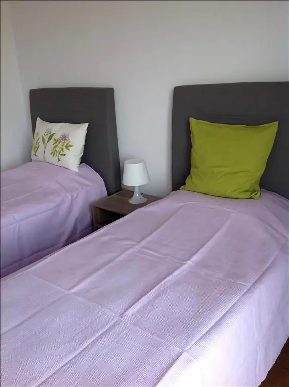 This apartment consists of two bedrooms, a living room that incorporates the kitchen area, and one shower room equipped with a WC. The double-frontage layout allows for increased natural light and ventilation throughout the space. The property is equipped with air conditioning and features awnings to provide shade and comfort during warmer months.