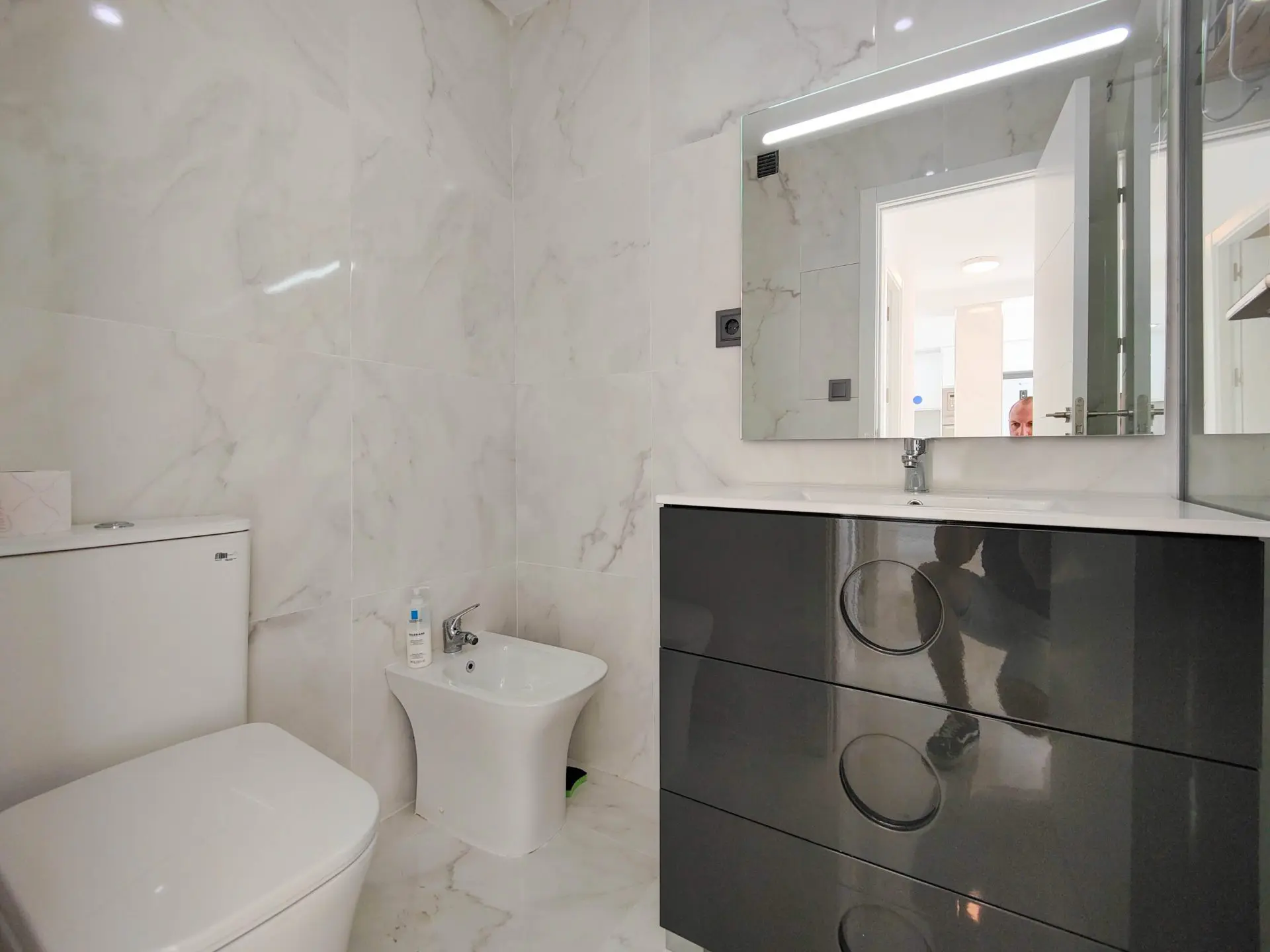This apartment has undergone a complete renovation, which includes updated electrical installations and plumbing, making it move-in ready. It features two large bedrooms, each with fitted wardrobes and direct access to the terrace. The space is complemented by two bathrooms, both conveniently fitted with showers.