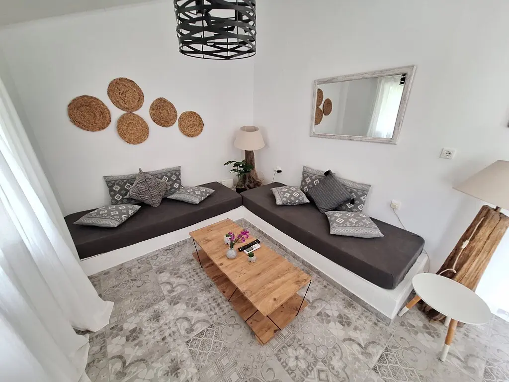 The maisonette is equipped with solar panels for water heating, promoting energy efficiency. There’s air conditioning to ensure temperature control during the warmer months. Outdoors, you’ll find a designated barbecue area, ideal for entertaining or enjoying a meal al fresco.