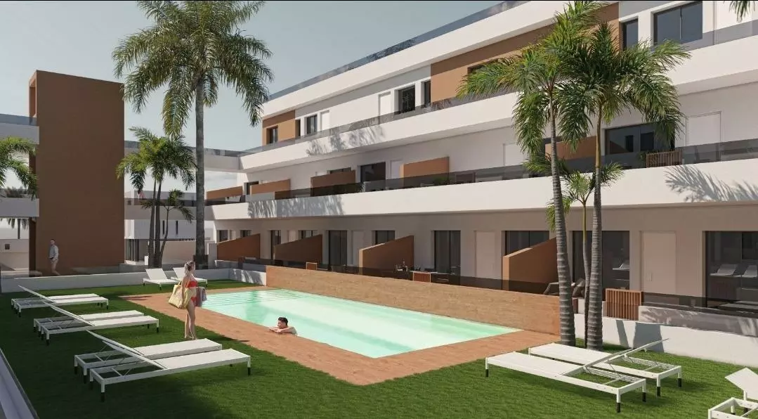 A new residential complex featuring modern apartments and penthouses is now available in Pilar de la Horadada. This development includes ground floor and middle floor apartments equipped with large terraces, as well as top floor penthouses that offer private solariums. These properties are designed to provide a contemporary living experience.