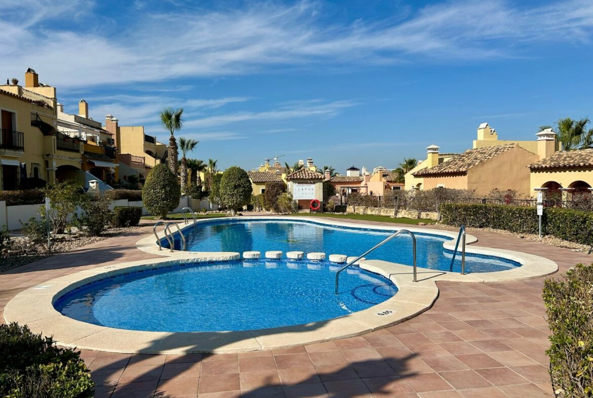 This apartment for sale in Algorfa is located within a gated development, providing a secure and tranquil living environment. The property is situated just minutes away from the well-known La Finca Golf Course, making it a suitable choice for golf enthusiasts. Additionally, residents have easy access to a nearby shopping center that features a variety of shops, bars, and restaurants.