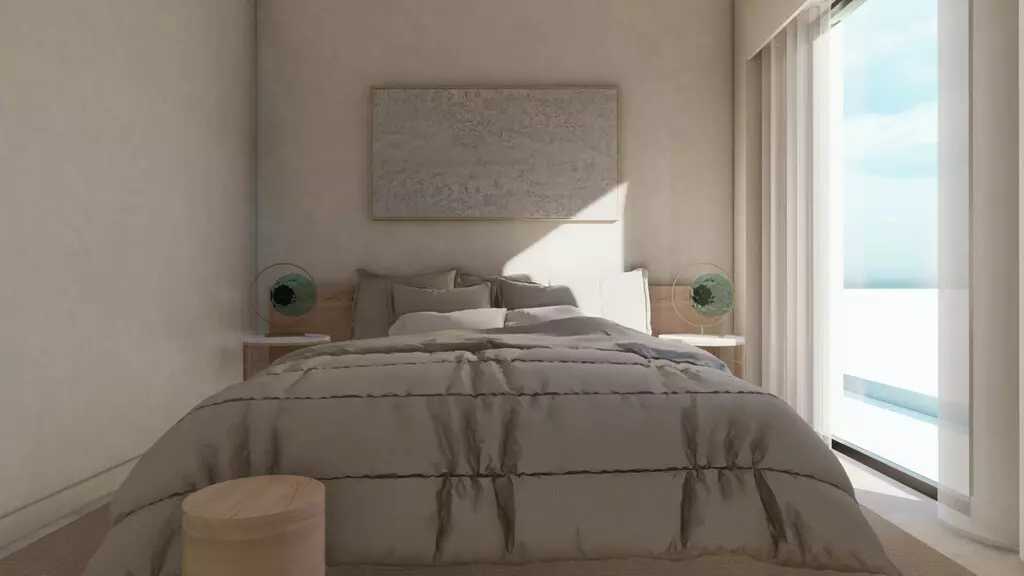 As for other utilities, awnings are included to provide shade and additional control over sunlight entering the unit. The apartment is also equipped with standard heating for colder months, ensuring year-round functionality.
