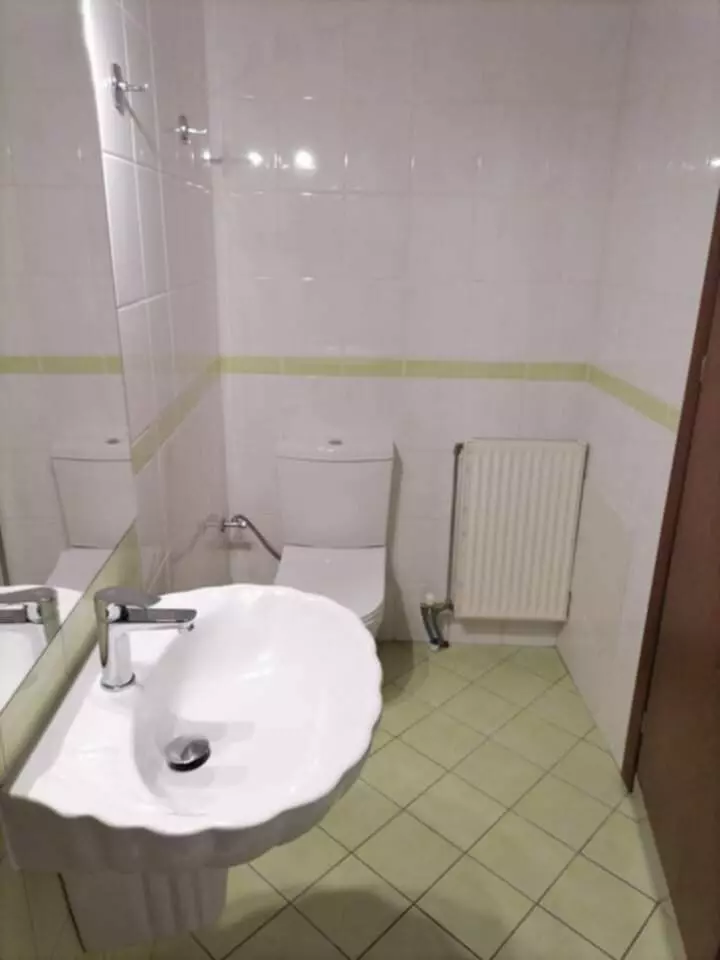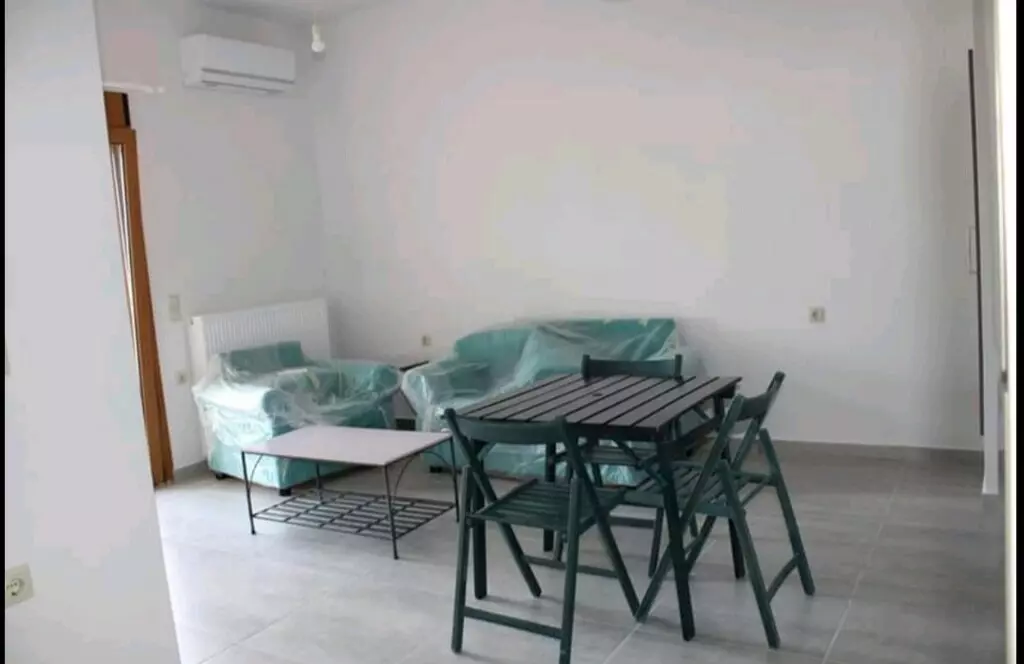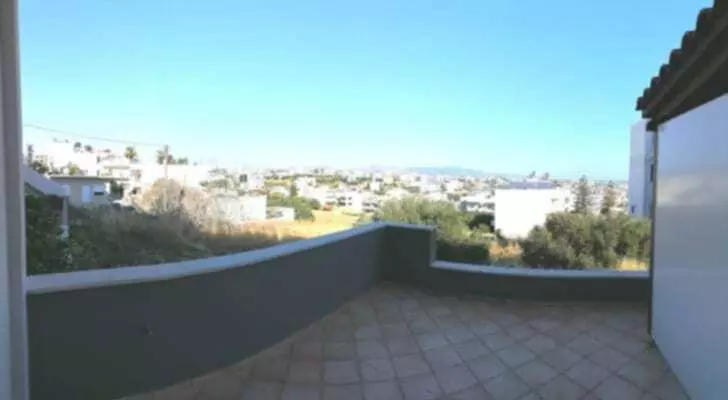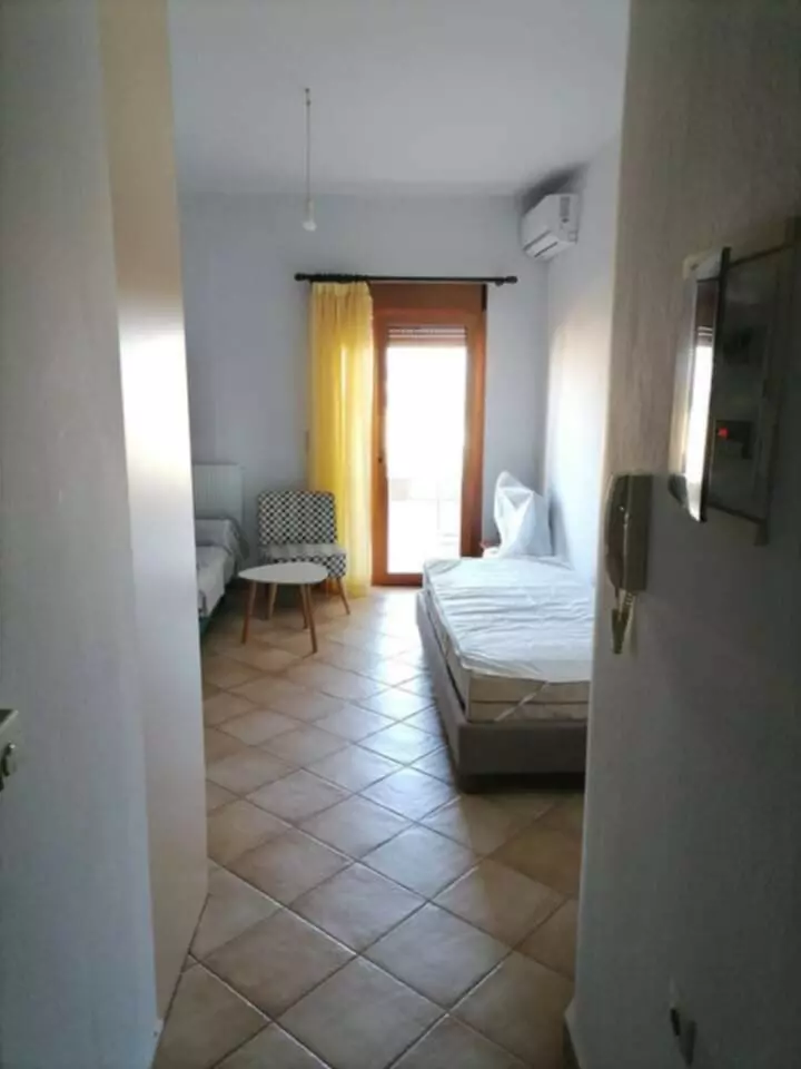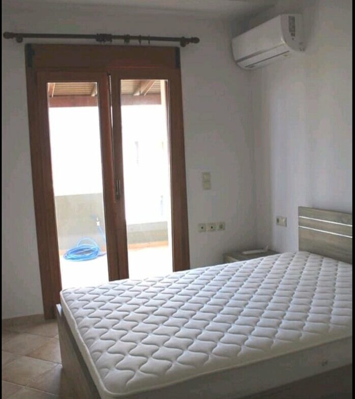 For sale is a 75 square meter apartment located in Crete. This flat features a front layout, providing a view of the city from its windows. The space includes practical installations such as solar panels designed for water heating and air conditioning for climate control.