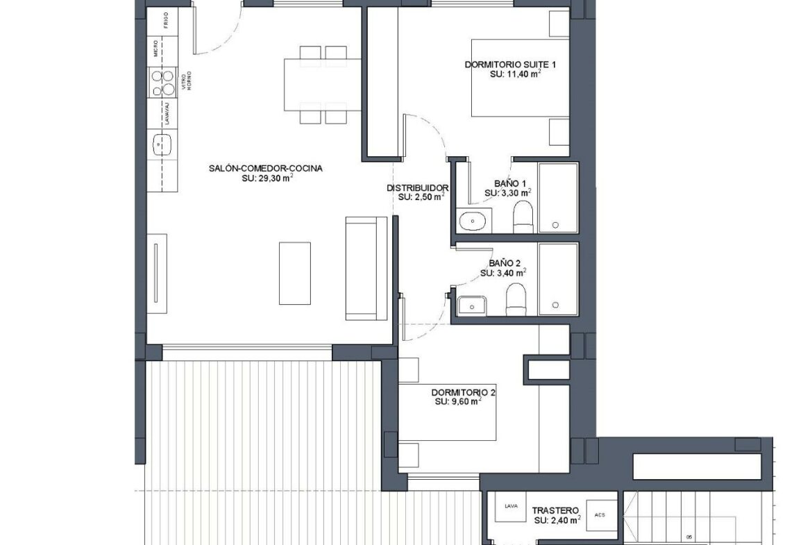 Choose from a variety of modern apartments that come with either terraces or penthouses featuring solariums. These new build properties offer an open plan kitchen and living room layout, along with 2 or 3 bedrooms and 2 bathrooms. Each unit includes a terrace for outdoor enjoyment, and there is an option to secure an underground parking space for an additional cost.