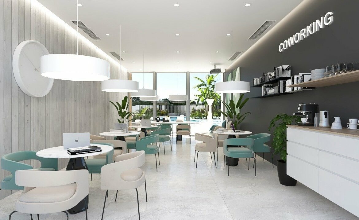 For those seeking to maintain an active lifestyle, the complex comes equipped with a fully equipped gym. This fitness center allows residents to prioritize their health without having to leave the property. If working from home is a necessity, the complex has a coworking area that provides a productive environment, all with views of the landscaped gardens.