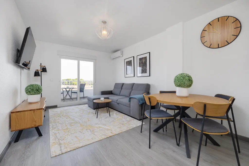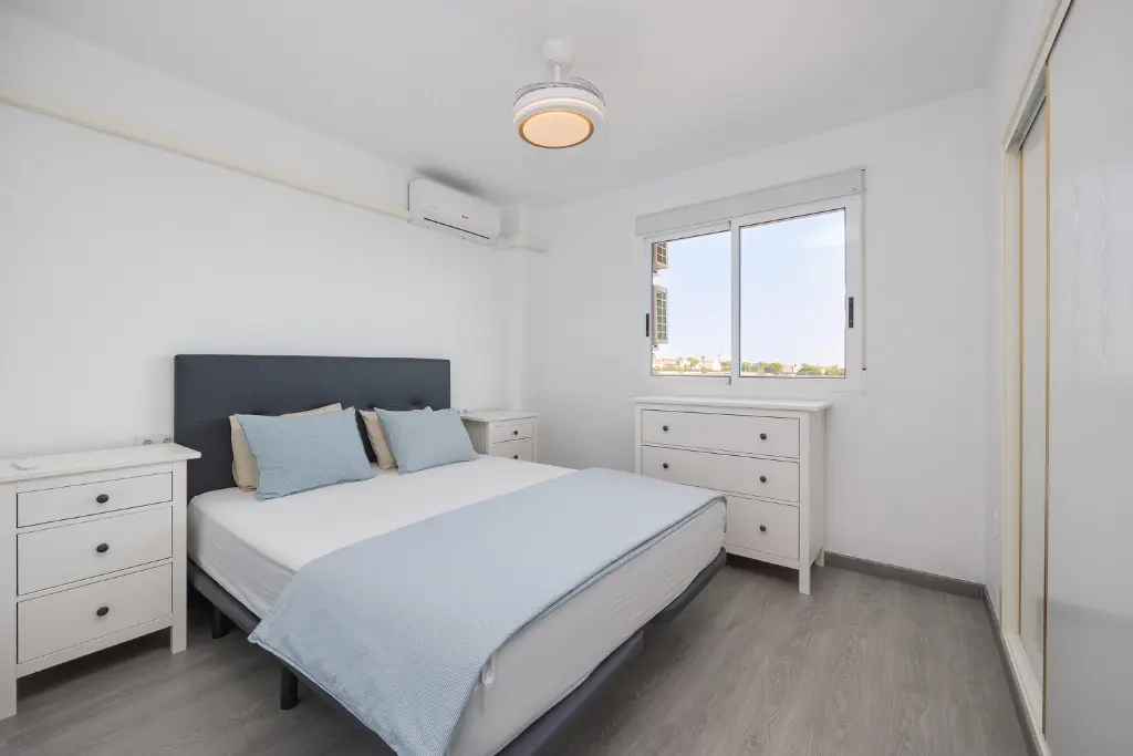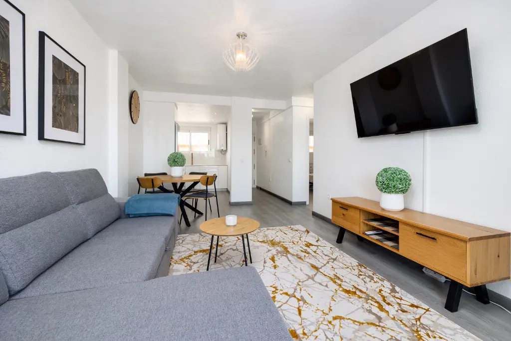 Explore this newly renovated first-floor apartment located in Punta Prima, a popular destination on the southern Costa Blanca. This property spans 75 square meters and features two bedrooms, a separate equipped kitchen, and a bathroom complete with a walk-in shower. The spacious living-dining area is ideal for various activities, from casual meals to relaxation.