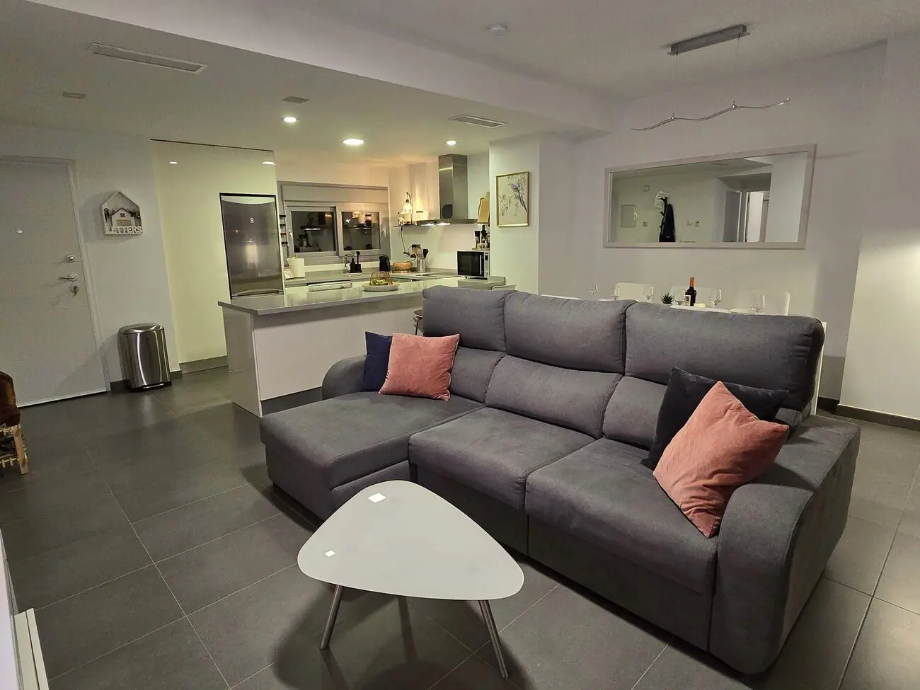 Among the recent updates is a new sofa in the living room and a washing machine, indicating that the property is equipped with essential modern appliances. The furnishings are practical and complement the living area effectively.