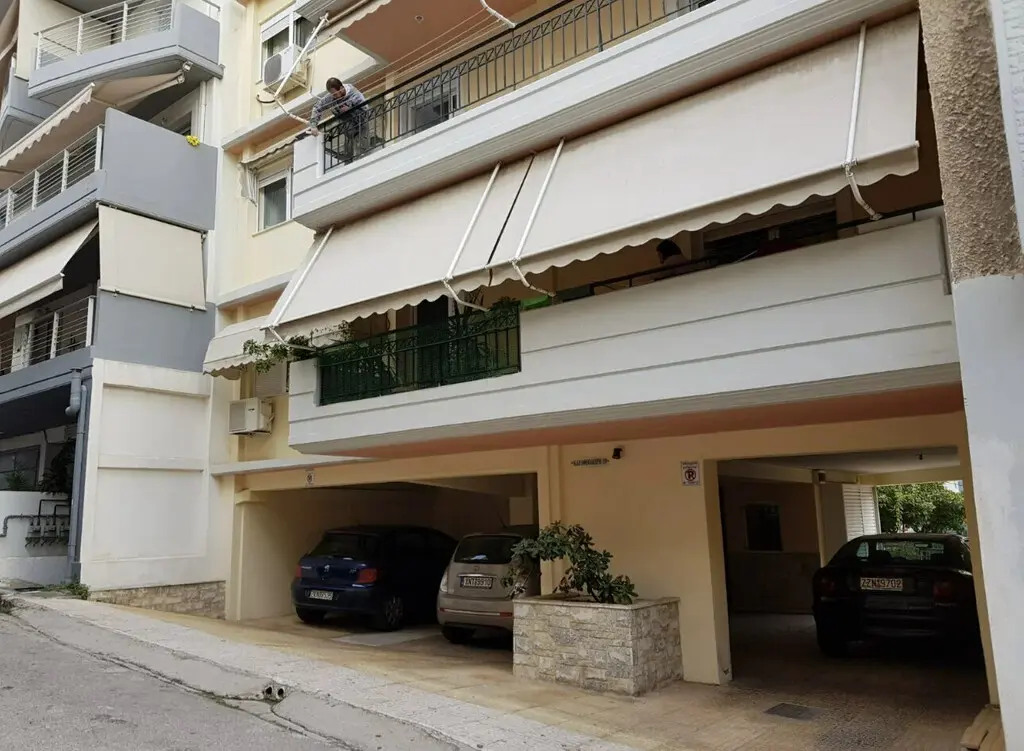 The building where this apartment is located includes an elevator, simplifying access to the upper floors. Additionally, parking is available, which is an important feature in urban settings like Athens, where space can be limited.