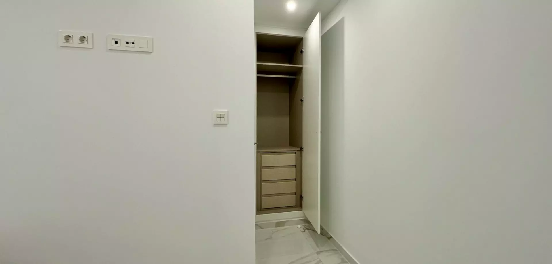 The apartment includes a west-facing terrace measuring 5 m², which offers ample natural light throughout the afternoon. This outdoor space serves as a great spot to enjoy fresh air and relaxation. Inside, the property features solid wood carpentry and a fully equipped kitchen, ready for immediate occupation. The clean, contemporary finish contributes to a functional living environment.