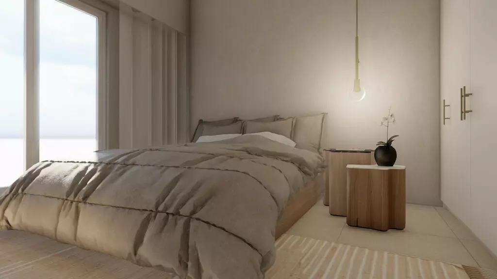 The apartment has a front layout, which can enhance natural light throughout the day. Additionally, it comes equipped with solar panels for water heating, contributing to energy efficiency. For climate control, the unit includes air conditioning, allowing residents to maintain a comfortable environment regardless of the weather.