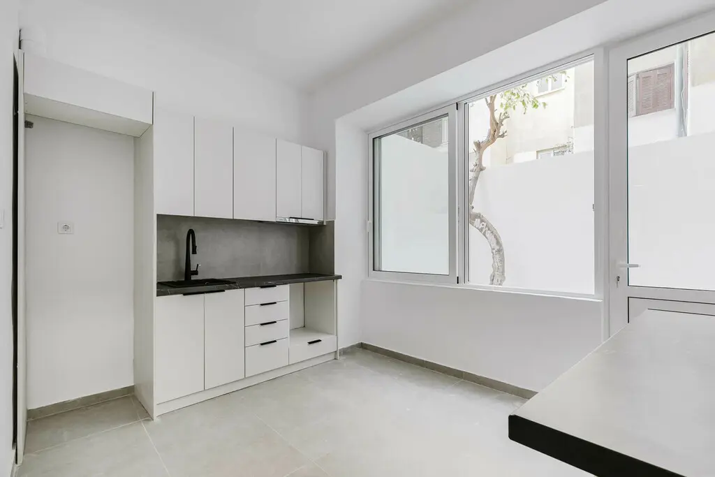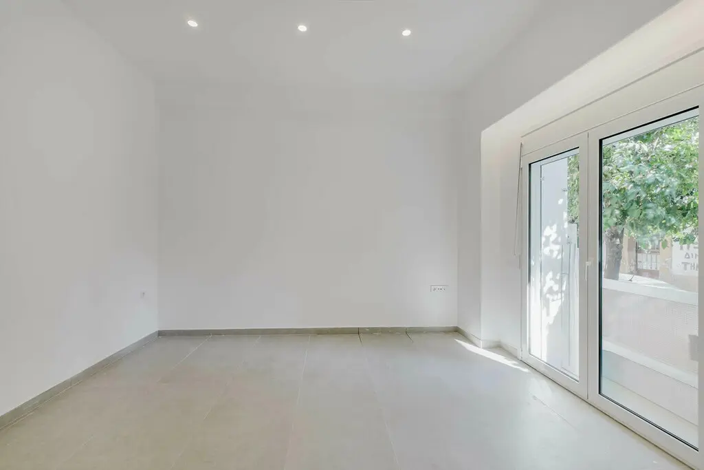 For sale is an apartment measuring 82 square meters located in Athens. This ground floor unit features a front layout and includes two well-sized bedrooms, a living room integrated with a kitchen, and one shower room with a toilet.