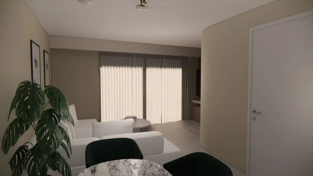 This apartment consists of two bedrooms, making it suitable for small families or individuals looking for extra space. The living room comes with an integrated kitchen, offering a functional environment for daily activities. Additionally, there’s a shower WC, which adds to the overall convenience of the layout.