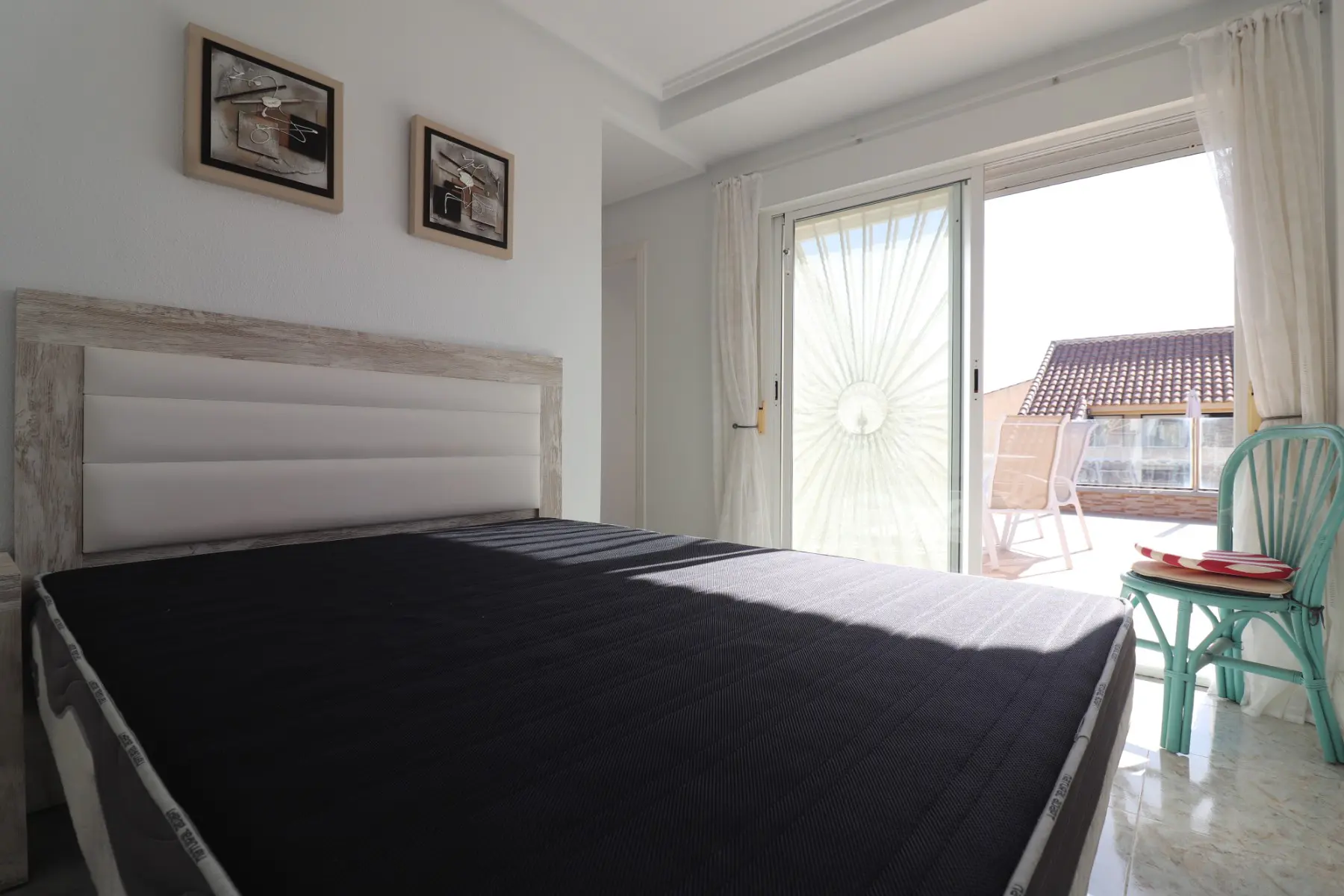 The villa includes a fully fitted separate kitchen designed for convenience. The lounge is spacious, featuring air conditioning and a log burner to ensure comfort all year round. Altogether, there are three double bedrooms. On the first floor, the master bedroom comes with an en suite shower room and offers access to a private solarium through patio doors, providing a spot for relaxation and sunlight. The ground floor hosts the remaining two double bedrooms, each equipped with fitted wardrobes and air conditioning for added comfort. A family bathroom is also situated on this level for easy access.