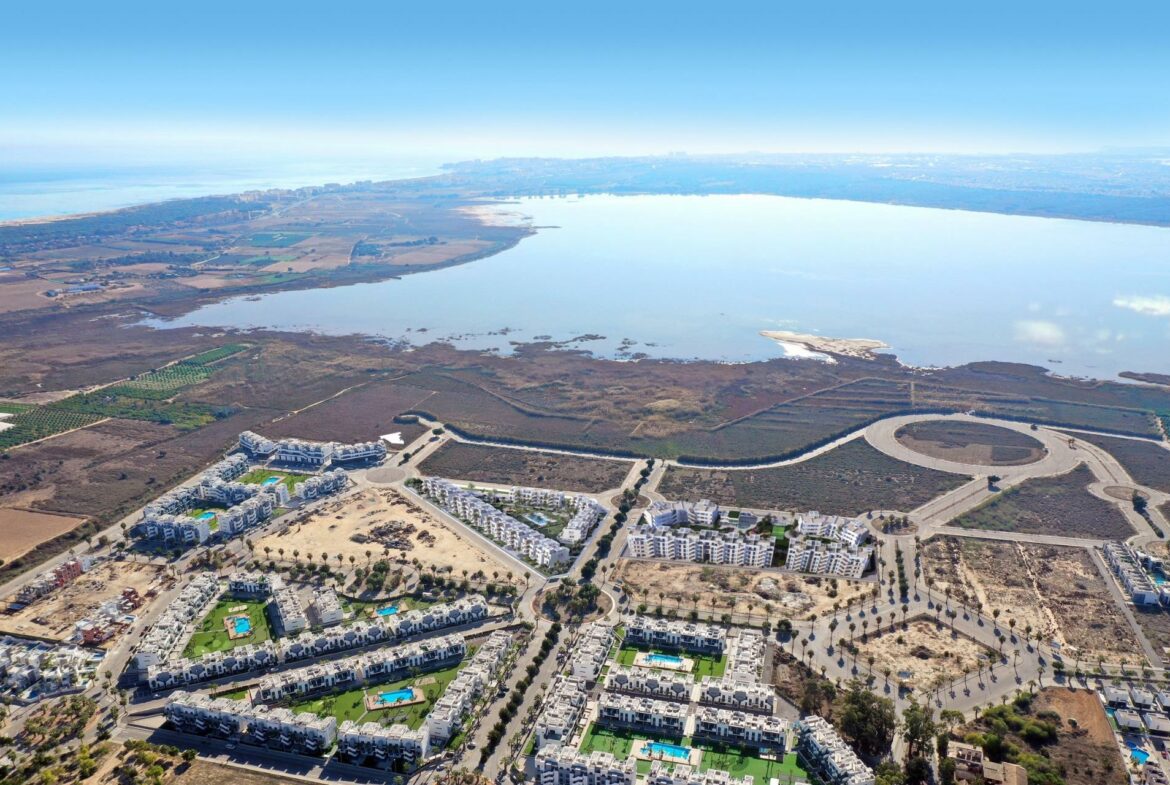 This residential complex occupies a distinctive plot adjacent to the natural landscape of the salt lagoon, promoting biodiversity and an exceptional environment. Living in El Raso enables convenient access to a variety of services and amenities, alongside proximity to some of the finest beaches along the Mediterranean coast.
