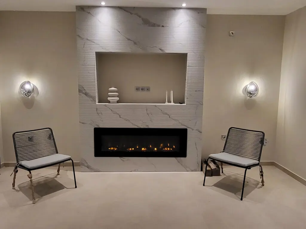 The apartment offers a variety of features tailored for everyday living. A notable aspect is the fireplace, providing a practical heating solution. Air conditioning is also included, ensuring a comfortable indoor climate throughout the year. Additional elements such as awnings enhance the use of outdoor spaces while protecting against sunlight.