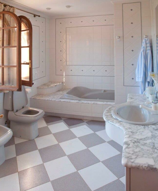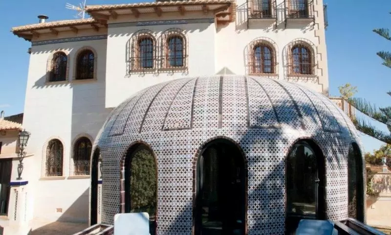 This Andalusia-style villa offers a total constructed surface area of approximately 860 square meters. It features multiple levels, including a ground floor, first floor, solarium, and a semi-basement. The property also includes useful outdoor spaces, such as a porch with a kitchen and barbecue, as well as an indoor swimming pool.