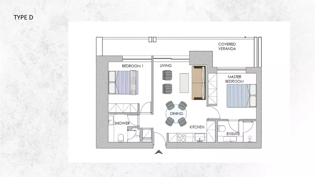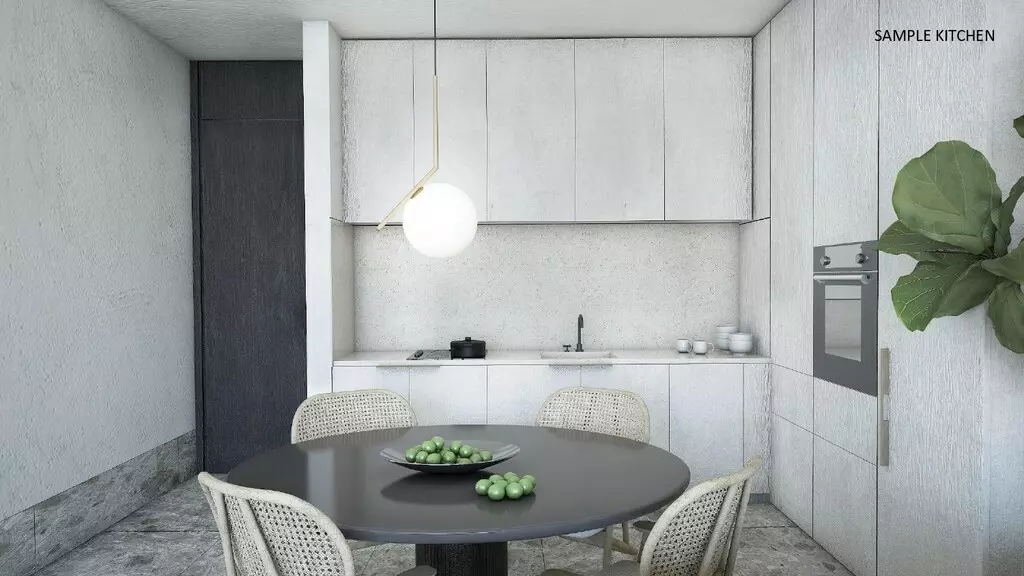 The apartment’s layout is front-facing, providing access to views and natural light. As this property is still under construction, it allows for personalization and adjustments according to preferences, appealing to buyers looking to make their mark on their new space.