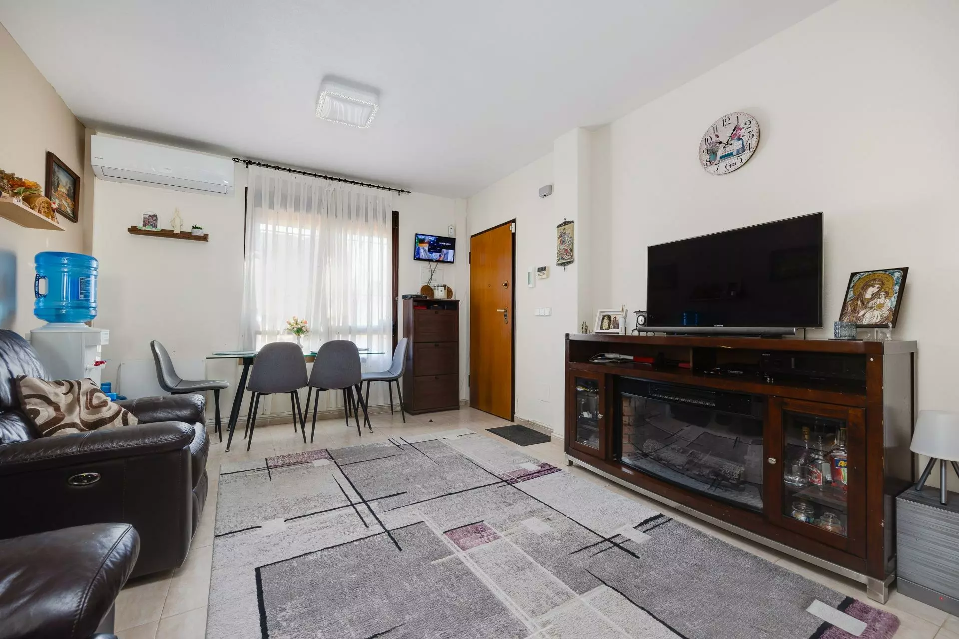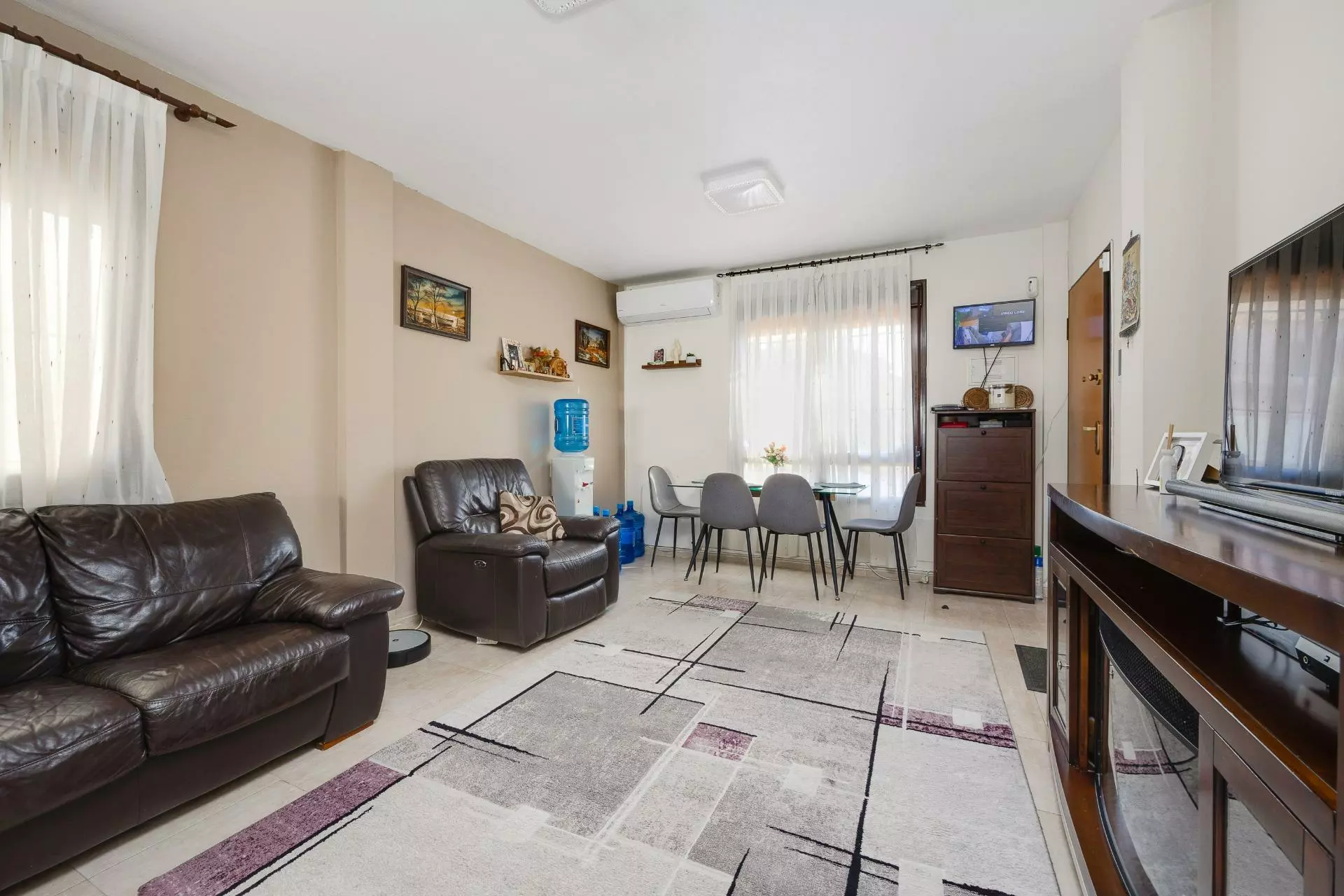 The property includes a living area that serves as a gathering space. Its design allows for easy movement and interaction, making it conducive for various activities, from relaxation to entertainment. Natural light may enter the living area, enhancing visibility and creating a welcoming atmosphere.