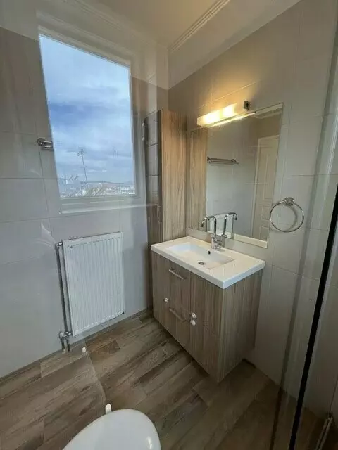 This charming apartment features three cozy bedrooms, providing ample space for relaxation or a productive home office. The living room seamlessly integrates with a modern kitchen, creating a warm and inviting atmosphere for hosting friends or family dinners. With both a shower WC and an additional separate WC, convenience is at your fingertips.