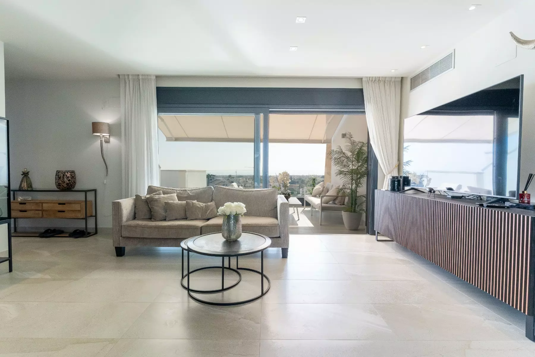 Step into a world of refined elegance, where sleek modern lines and high-quality finishes are evident in every corner. Large windows flood the open-plan areas with natural light, creating an inviting atmosphere throughout the penthouse.