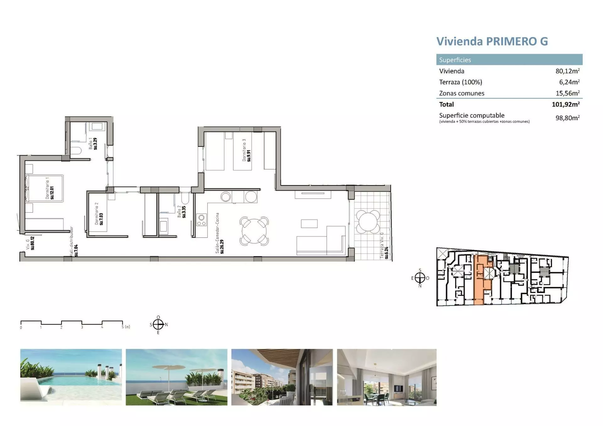 The development comprises modern properties with options for 2 and 3 bedrooms. Each property includes 2 bathrooms, a bright living-dining area, an integrated kitchen, and a terrace. These units are designed to maximize space and functionality.