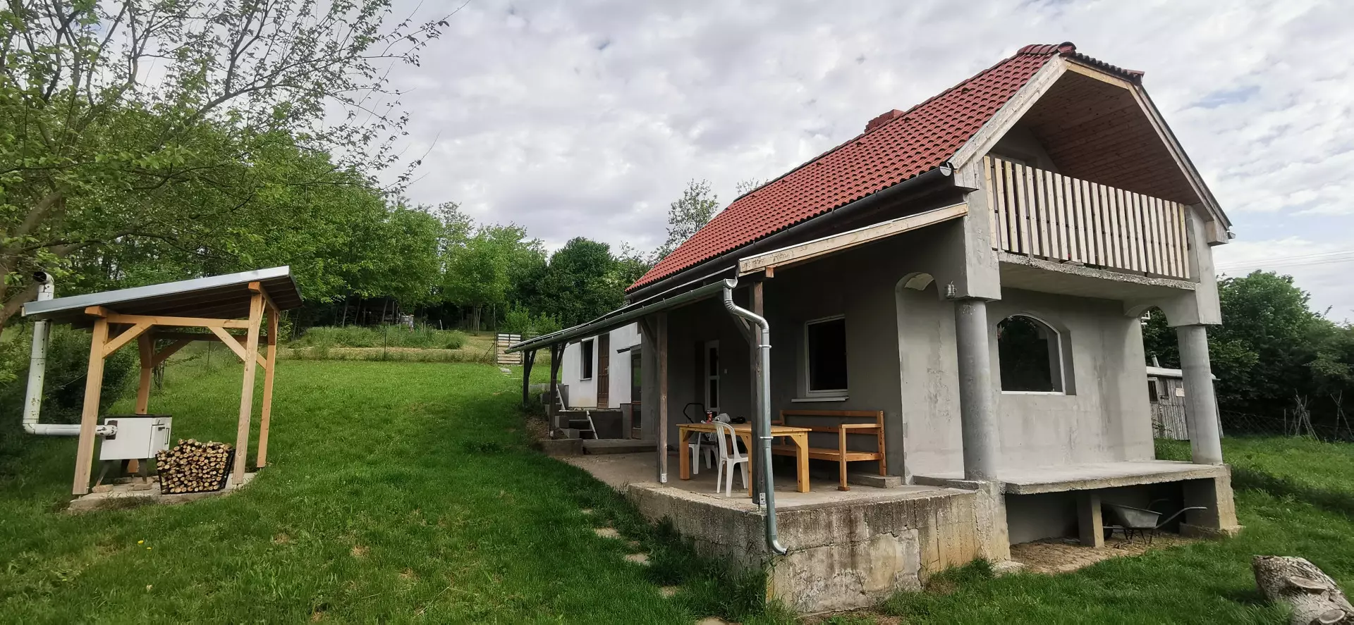 Water supply is provided by a 75-metre-deep drilled well with tested, potable-quality water. Connection to the public water network is also possible if required. Wastewater is drained into a settling tank. There is no gas connection available in the area.