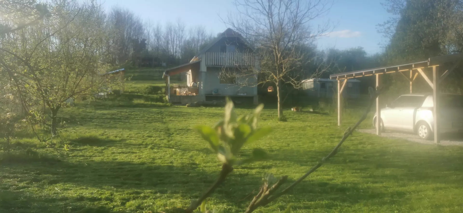 Approximately two-thirds of the plot is fenced. The upper part of the property is accessible via a crushed stone road, while the lower part can be reached via a gravel road.