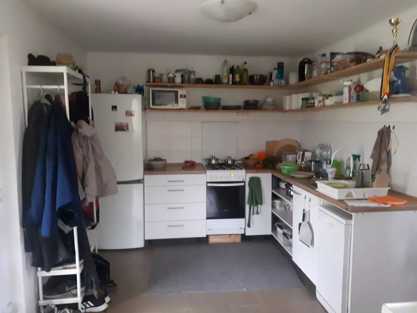 The electricity meter is located next to the living room. The water heater operates on night-time electricity, while the four heating and cooling air-conditioning units (4 × 3.5 kW) run on a special “H” tariff.
