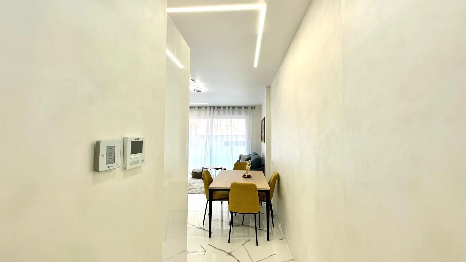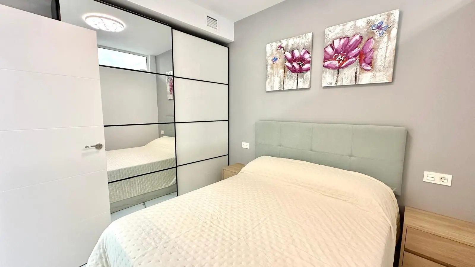 Spectacular renovated ground floor apartment next to Playa del Cura beach Located on the second line of the iconic Playa del Cura beach, this property represents a unique opportunity to enjoy comfort, design and proximity to the sea. With a total usable area of 90 m2, this fully renovated ground floor apartment perfectly combines modernity, comfort and quality in every detail. From the outset, the property stands out for its excellent comprehensive refurbishment, where every aesthetic and functional aspect has been carefully considered. The property is delivered fully furnished and decorated in a modern and elegant style, using top-quality materials. All the furniture is new, as are the appliances, allowing you to move in without the need for any additional investment. The interior layout is spacious and well thought out. It has a cosy open-plan kitchen, equipped with contemporary furniture and connected directly to a bright open-plan living-dining room. This main room faces south, ensuring excellent light throughout the day. It also has a large panoramic window equipped with electric blinds, allowing you to enjoy natural light and the Mediterranean breeze in complete comfort. Comfort is assured thanks to its centralised air conditioning system with ECO technology, which guarantees an ideal temperature throughout the year while optimising energy consumption. The sleeping area consists of two spacious double bedrooms, both tastefully decorated and designed to offer maximum tranquillity. The master bedroom has an en-suite bathroom, providing privacy and functionality. The second bathroom, equally modern and fully equipped, serves the rest of the property. As an ideal complement, the property has a fabulous back garden, a perfect outdoor space for relaxing, enjoying family gatherings or creating a green and peaceful corner in the heart of the city. In short, this property combines all the qualities that define an exclusive home on the coast: an unbeatable location, high-quality materials, modern fittings and a design focused on comfort. Located just a few metres from the sea, it is an ideal choice as a permanent residence, holiday home or secure investment in one of the most sought-after areas of Torrevieja.