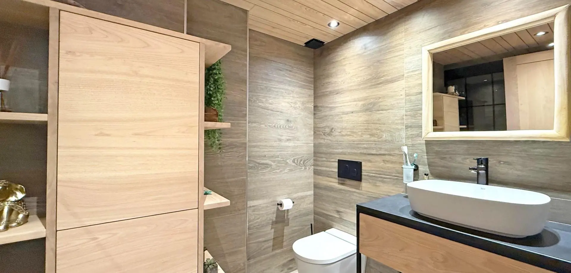 Inside, the apartment stands out with exclusive chestnut wood finishes throughout, a rare touch that adds warmth and sophistication. A luxurious jacuzzi invites you to relax in style, while air conditioning ensures year-round comfort.
