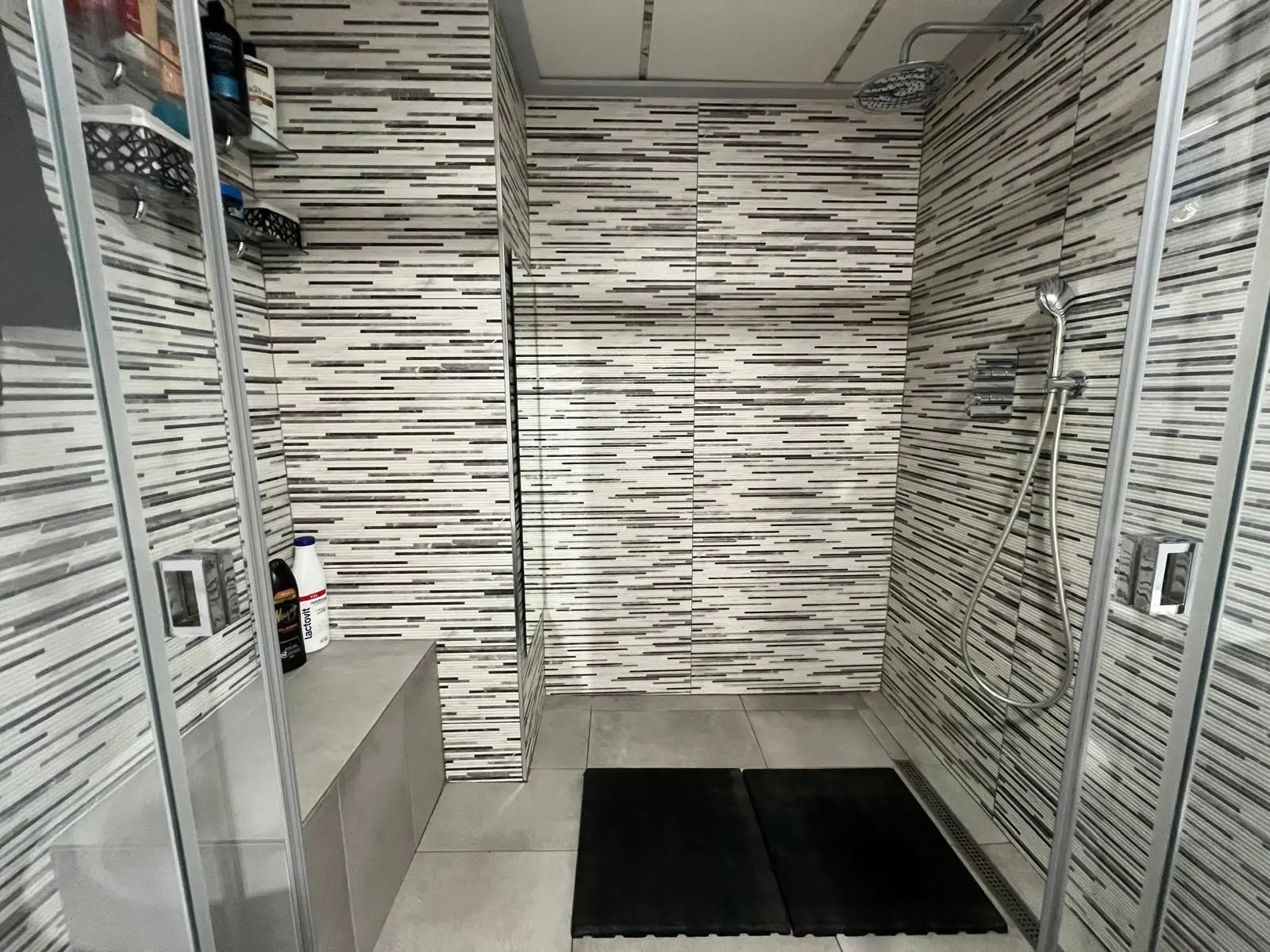 Main bathroom with impeccable renovation, featuring both a bathtub and a walk-in shower