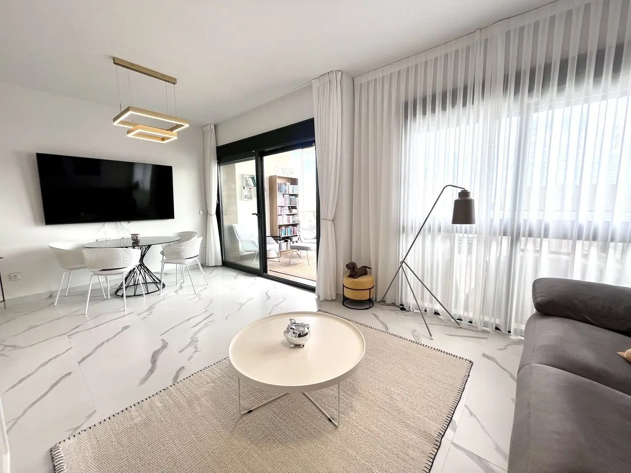 Step into this stunning 2-bedroom, 2-bathroom ground-floor apartment, perfectly positioned in one of the most sought-after areas of San Miguel de Salinas. Combining modern comfort with Mediterranean charm, this home offers everything you need for stylish, relaxed living. Flooded with natural light, the spacious open-plan layout features marble flooring throughout, a beautifully equipped kitchen, and a bright, inviting living and dining area that opens directly to the outdoors, ideal for enjoying the Costa Blanca sunshine all year round. The master suite boasts a generous en-suite bathroom, creating the perfect private retreat. Outside, you’ll find a lovely summer kitchen designed for alfresco dining and entertaining, plus sunny terraces with sea views and breathtaking vistas of the salt lakes. Additional features include a private garage, providing both comfort and security, and access to all the amenities that make this area so desirable. Whether you’re looking for a permanent residence, a luxurious holiday escape, or a sound investment on the Costa Blanca, this property truly has it all.